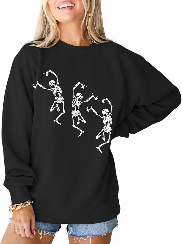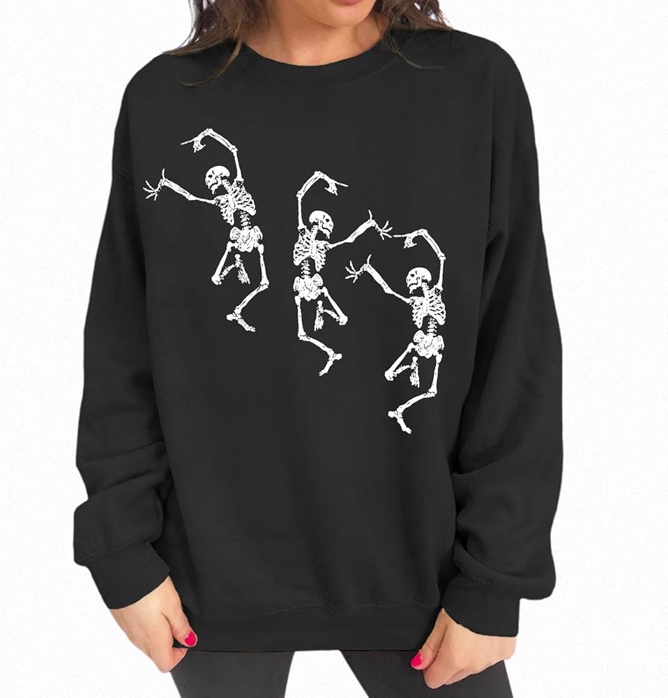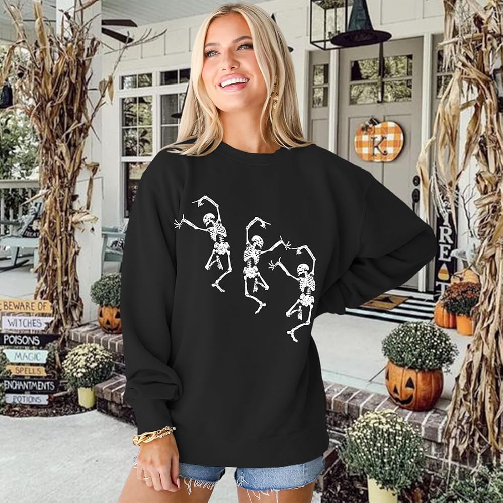 • 【المناسبة: بلوفر بأكمام طويلة مطبوع عليه جمجمة مرعبة لموسم مخيف. سويت شيرت بجمجمة رعب Happy Halloween، مناسب للارتداء اليومي، والرياضة، والعطلات، والمدرسة، والعمل، والحفلات، والتسوق، والمهرجانات الموسيقية، إلخ. هدايا الهالوين للقمصان النسائية. تجعلك تستمتع بحفلة الهالوين!