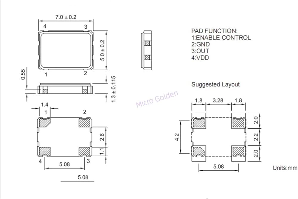 (5pcs) 3.072M 3.072MHZ 5070 7050 SMD Active Crystal Oscillator OSC 4Pin 5.0X7.0MM Clock Oscillators