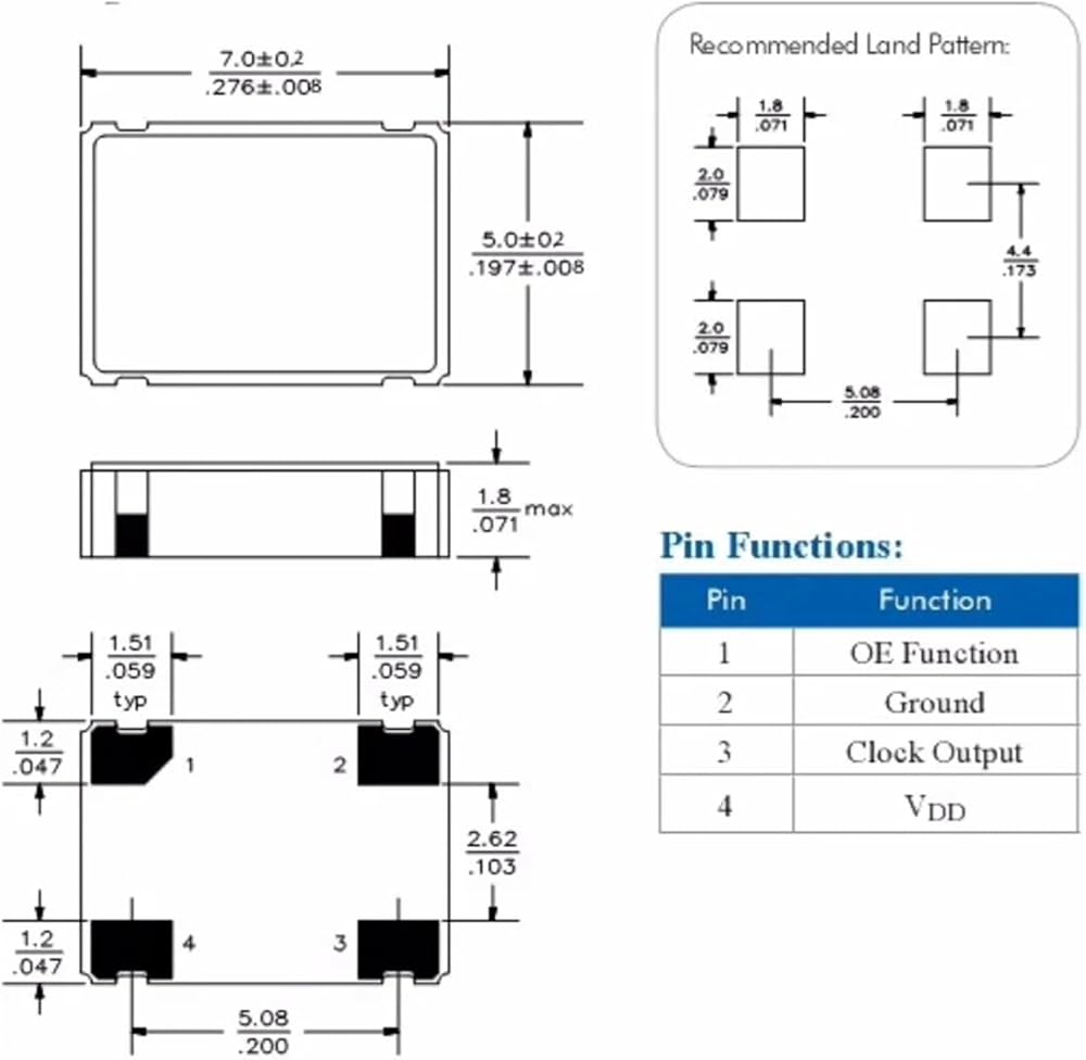 (5pcs) 110MHZ 110M 110.000MHZ 5070 7050 SMD Active Crystal Oscillator OSC 4Pin 5.0X7.0MM Clock Oscillators Resonator 7.0x5.0mm