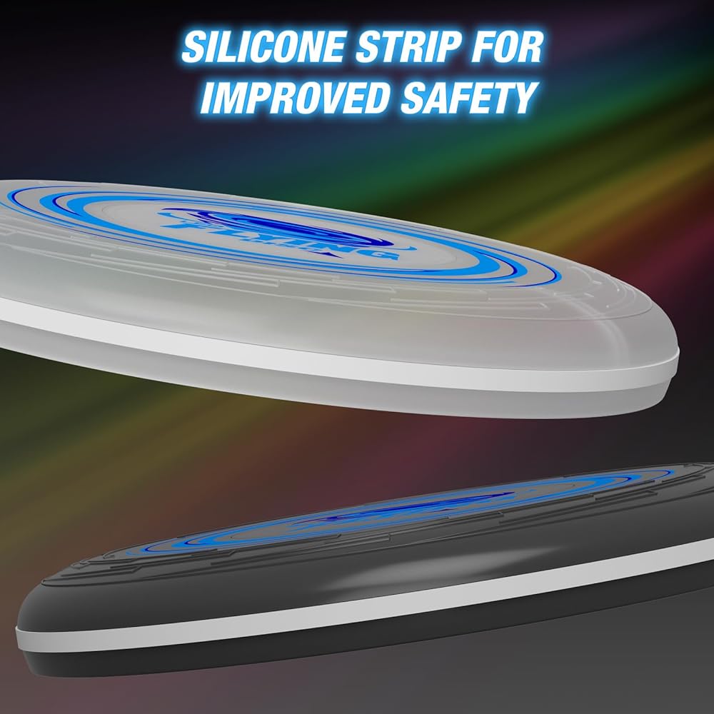 مادة ABS متينة وآمنة: التصميم المضاد للانزلاق لشريط السيليكون الختم يعزز متانة وقبضة القرص الطائر. تضمن مادة ABS غير السامة حصول الأطفال على وقت لعب آمن. لعبة القرص عالية الجودة والممتعة هي أفضل شريك لألعاب الأطفال.