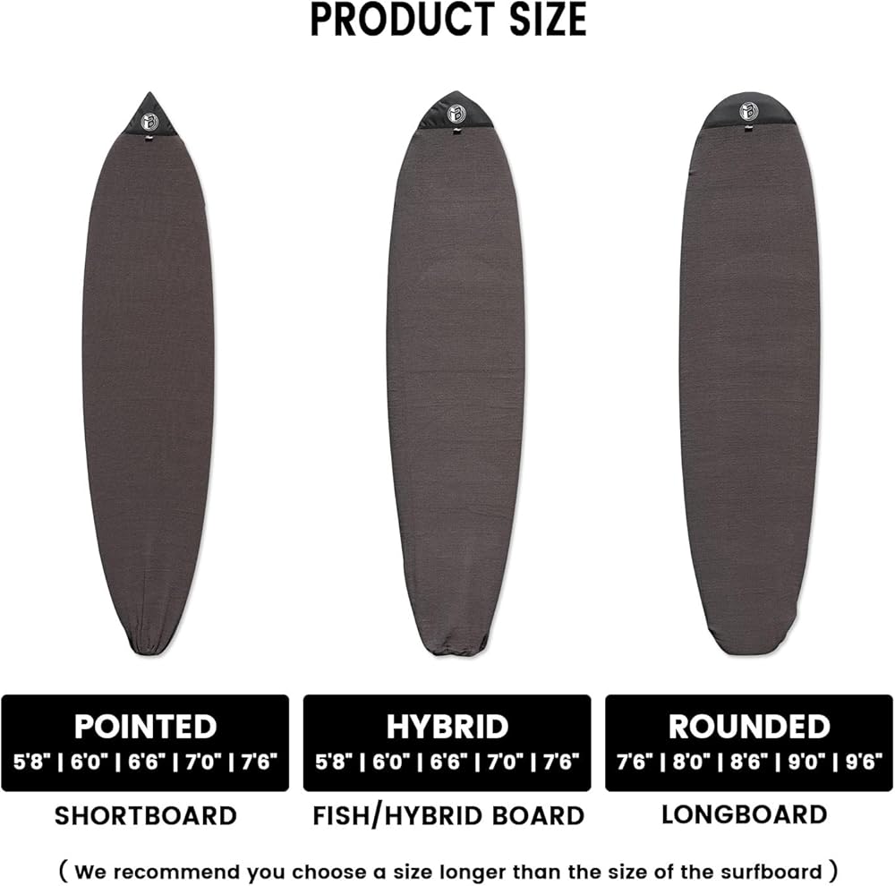 Multiple Choices - There are 2 colors of surfboard socks and 9 sizes for your choice, suitable for various surfboards, such as shortboard, longboard, fish and HYBRID board. You can choose surf board sock that fit your surfboard size. We recommend you choose a size longer than the size of the surfboard.