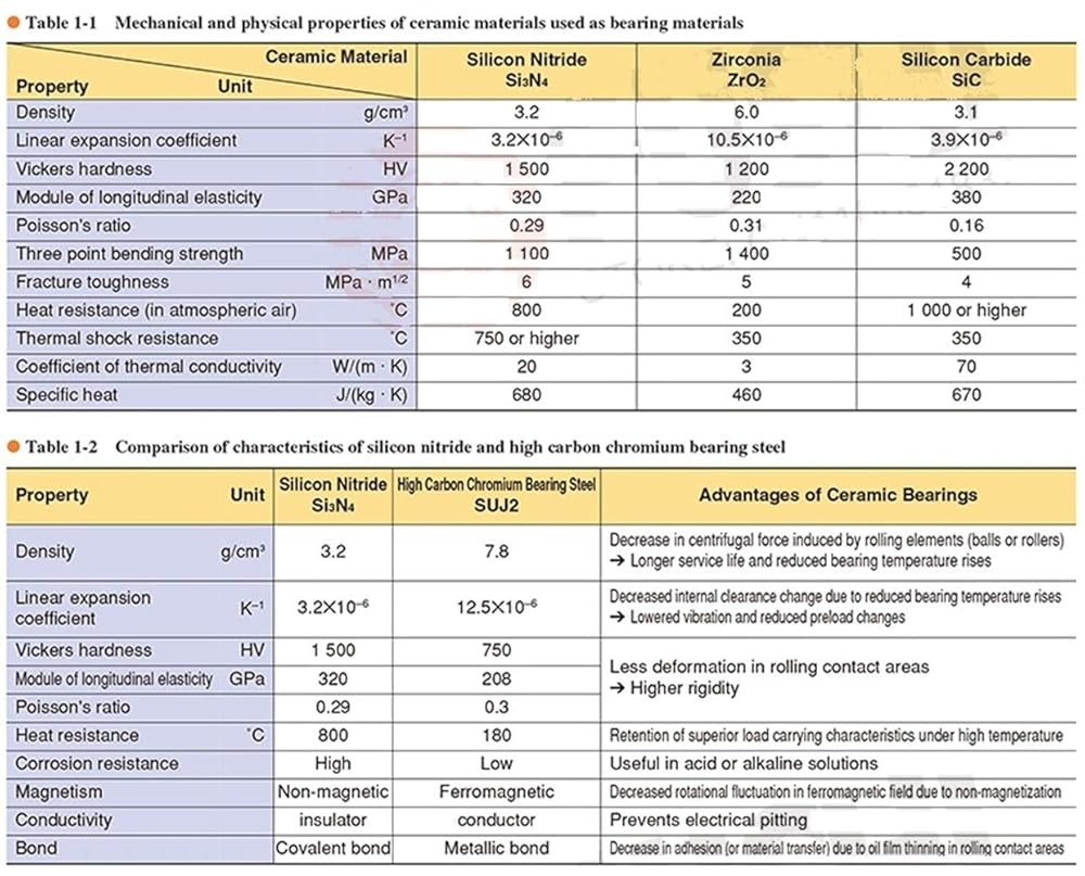 Ceramic Bearings are highly heat resistant enabling a rolling bearing to be practical in a high temperature environment. The low density of ceramic decreases the centrifugal force induced by rolling elements (balls or rollers) contributing to an increased speed of the apparatus.