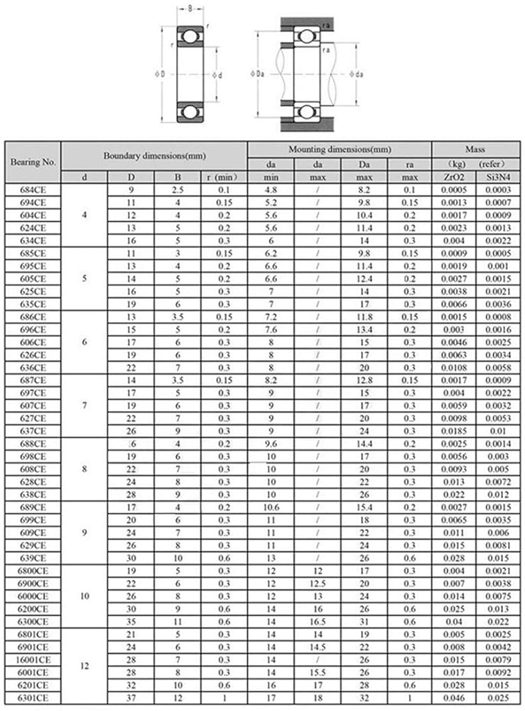 • Material: Full Ceramic Si3N4; Structure: Full Balls