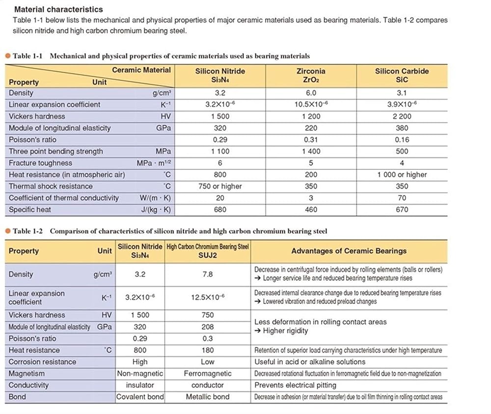 Ceramic Bearings are highly heat resistant enabling a rolling bearing to be practical in a high temperature environment. The low density of ceramic decreases the centrifugal force induced by rolling elements (balls or rollers) contributing to an increased speed of the apparatus.