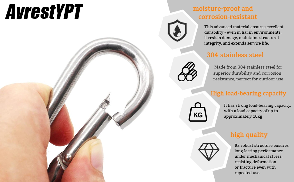 【مشابك حلقة تسلق صغيرة مواد عالية الجودة】هذه الحلقات الصغيرة مصنوعة من الفولاذ المقاوم للصدأ 304 الممتاز، ومقاوم للماء، ومقاوم للصدأ، ومقاوم للاهتراء، ومقاوم للتآكل، وقوي للغاية. وهذا يجعلها متينة، مما يتيح لك استخدامها براحة البال لفترة طويلة.