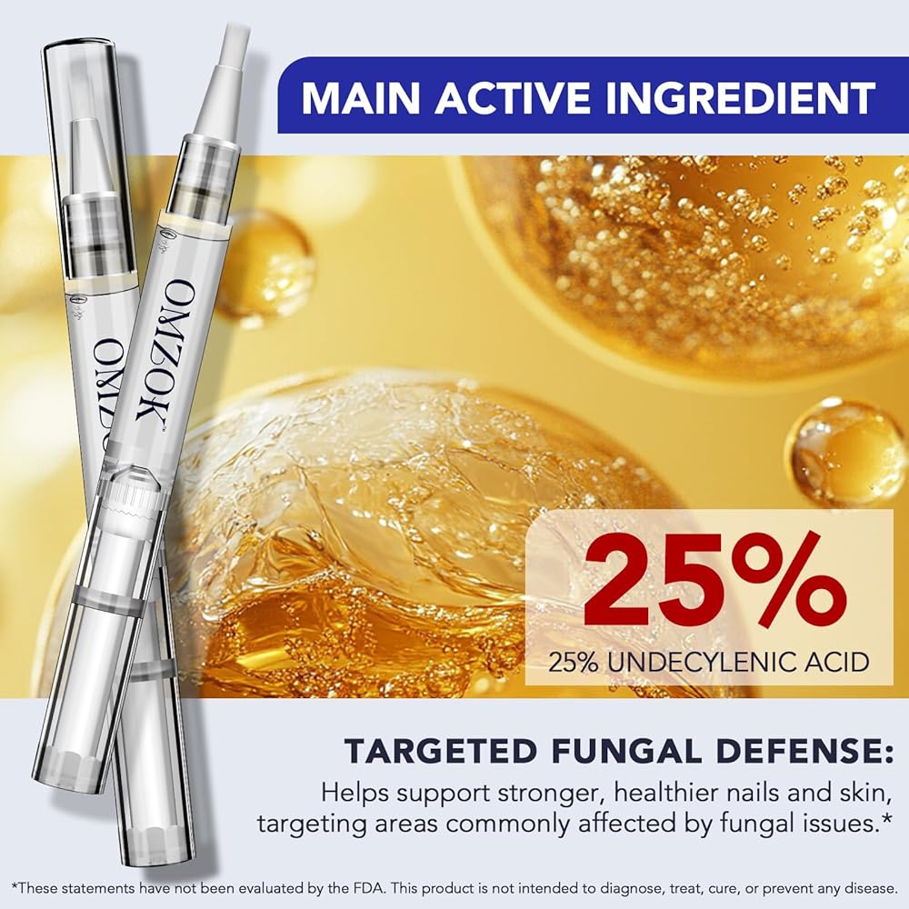 حمض الأنديسيلينيك القوي بنسبة 25% والزيوت الطبيعية: تركيبتنا فائقة القوة تجمع بين حمض الأنديسيلينيك بنسبة 25% وزيوت شجرة الشاي وبرعم القرنفل والجوجوبا لمكافحة فطريات أظافر اليدين والقدمين العنيدة بشكل فعال، وتعزيز المظهر الصحي للأظافر.