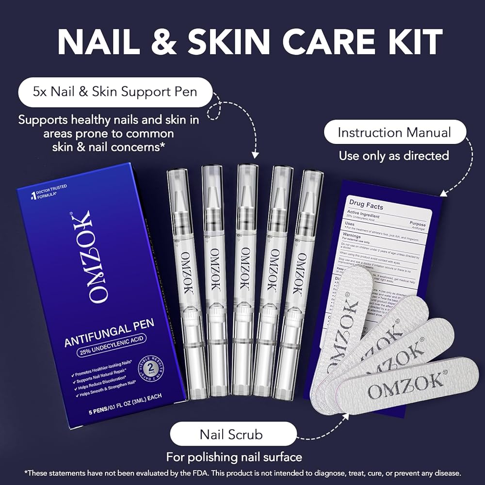 علاج فطريات أظافر القدم بقوة إضافية، قلم فطريات الأظافر، 25% حمض غير ديسيلينيك مع زيت شجرة الشاي المضاف، الجوجوبا، زيوت برعم القرنفل والصبار، محلول سريع المفعول لفطريات أصابع القدم والأظافر، 5 قطع