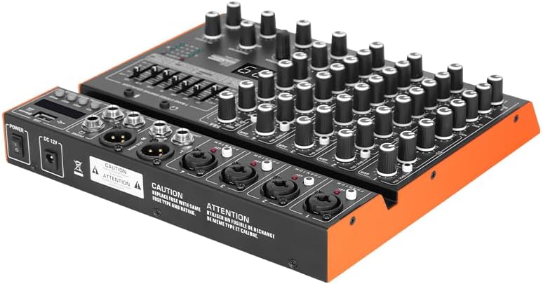 【خلاط دي جي احترافي مع 99 تأثير DSP و7 نطاقات رسومية EQ】 يحتوي خلاط الصوت هذا على 99 مؤثر رقمي DSP مدمج (تردد، تأخير، صدى، جوقة، إلخ.) لإضافة عمق للغناء والعروض الحية. يتيح لك المعادل الرسومي الاستريو ذو 7 نطاقات تخصيص الصوت والتخلص من ردود الفعل وتجنب التحميل الزائد للإشارة من خلال مؤشرات مستوى واضحة، مما يوفر صوتًا أصليًا بجودة الاستوديو في جميع السيناريوهات.