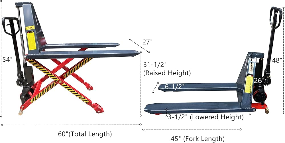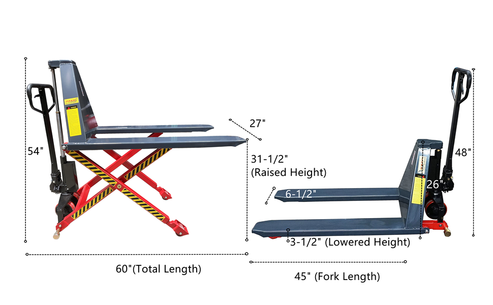 سهلة التخزين: بالتأكيد ليست رافعة المضخة اليدوية المتوسطة لديك. يبلغ قياسها 60 × 27 × 48 بوصة، مما يجعلها تنجز المهمة دون أن تشغل مساحة كبيرة.