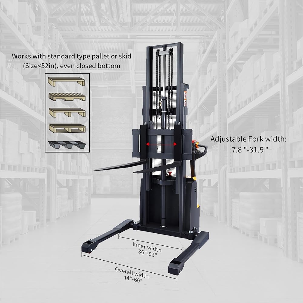 • مكدس كهربائي كامل خفيف للغاية بسعة تحميل 3300 رطل. يتطلب التجميع الجزئي والشوك والأرجل المتداخلة التثبيت الذاتي