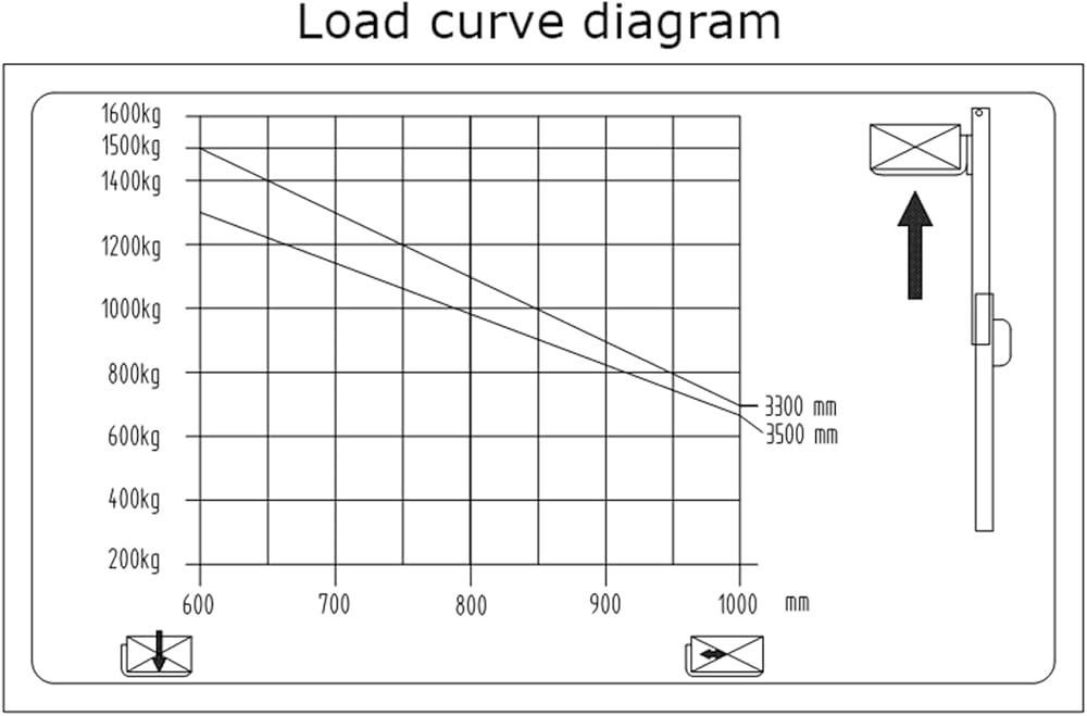 • الحد الأقصى لارتفاع الرفع 138 بوصة، ارتفاع الشوكة المنخفض: 2.8 بوصة، ارتفاع الصاري المنخفض 94.3 بوصة، ارتفاع الصاري الممتد 163.2 بوصة. يتراوح عرض الأرجل الممتدة من 45.9 إلى 61.6 بوصة