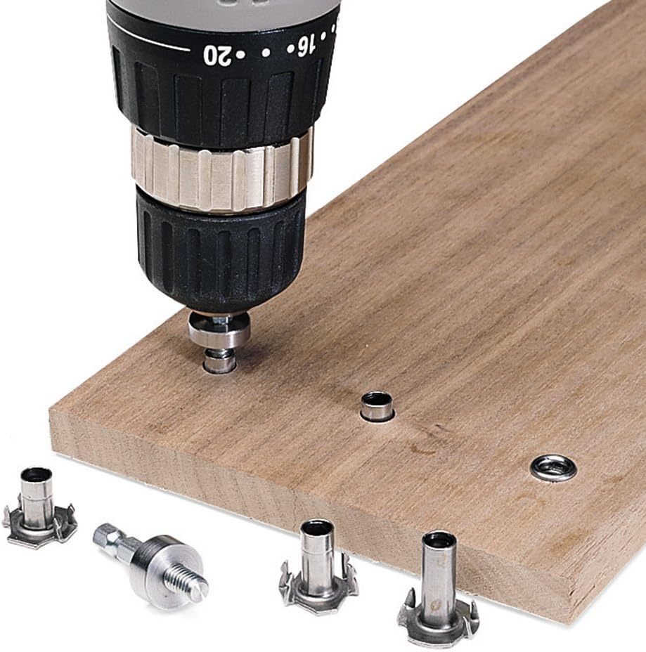 Special T-nuts for use with the Riveting T-Nut Insertion Tool (30167, sold separately) in 3/4" thick material. The tool folds over the end of the T-nut, creating a neat, clean mushroomed end that holds the T-nut firmly in place. T-nut internal thread size: 1/4"-20. Package of 10.
