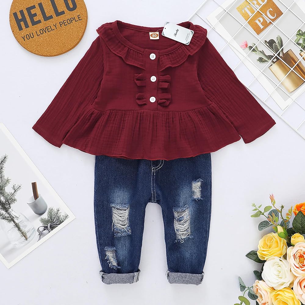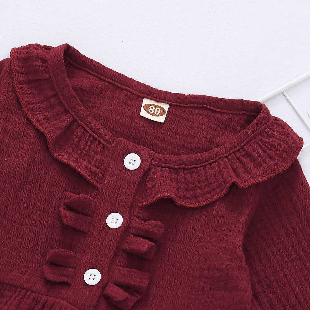 ملابس لطيفة للفتيات الرضع---قميص مضلع بأكمام طويلة مكشكش، تصميم بلون ثابت، بسيط ولكن أنيق، ناعم ولطيف للأطفال الصغار، رائع للارتداء مع سراويل الدنيم أو البوهو.