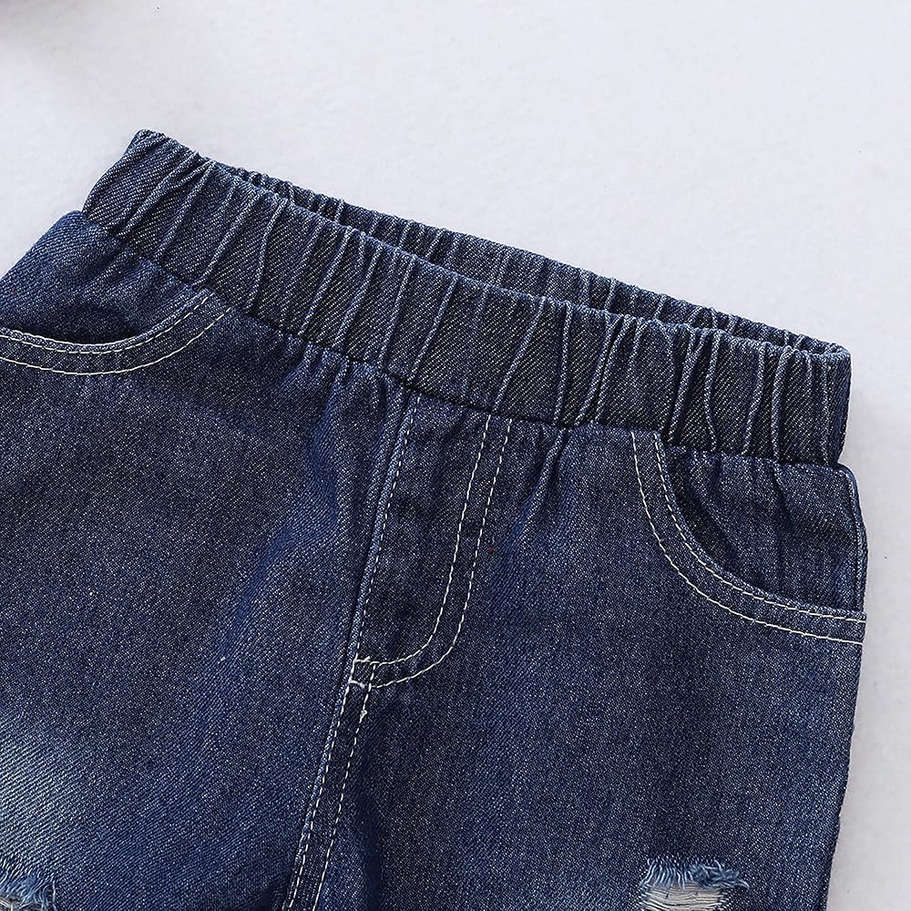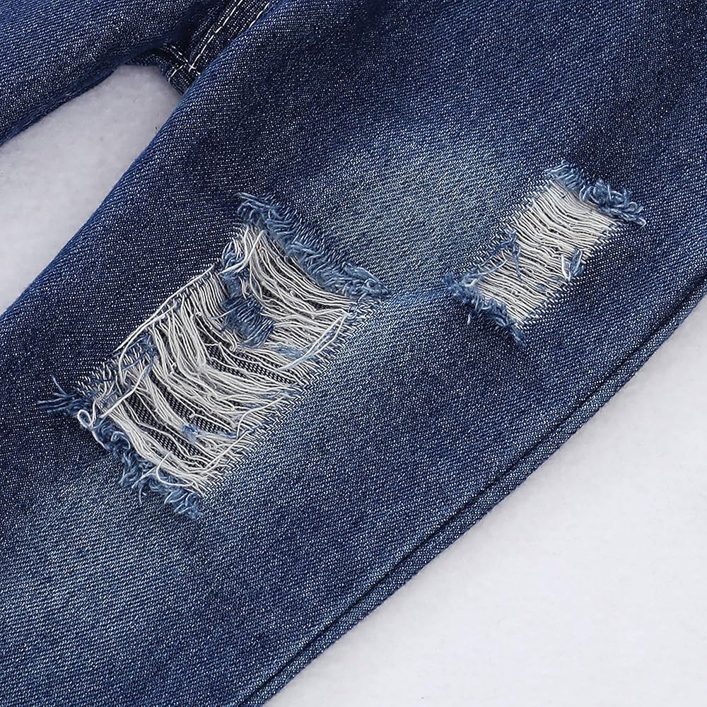 جينز ممزق للأطفال الصغار، سراويل جينز ممزقة عالية الخصر، جينز سحب مع جيبين، قماش مطاطي يساعد على سهولة الارتداء. ملابس شتوية عصرية للفتيات الصغيرات، من المؤكد أنها ستحصل على الكثير من الإطراء عند ارتدائها.