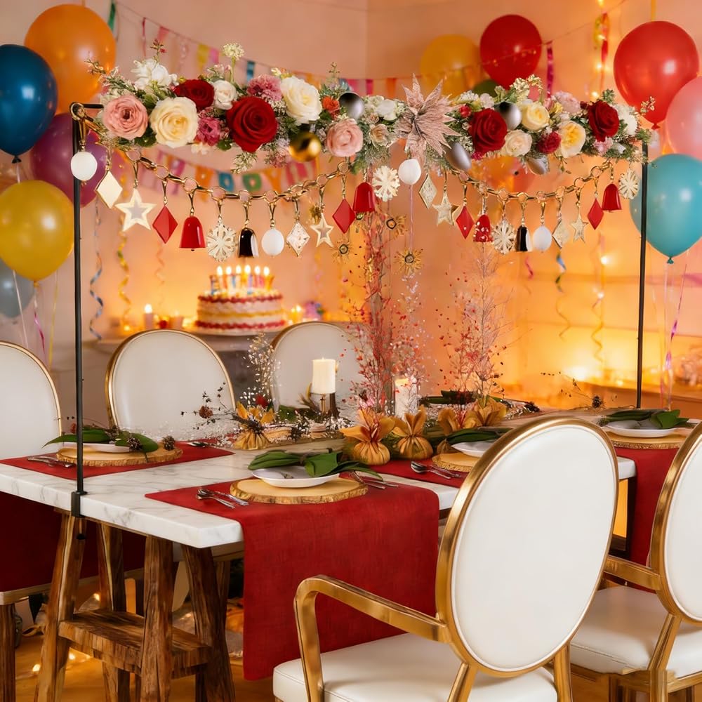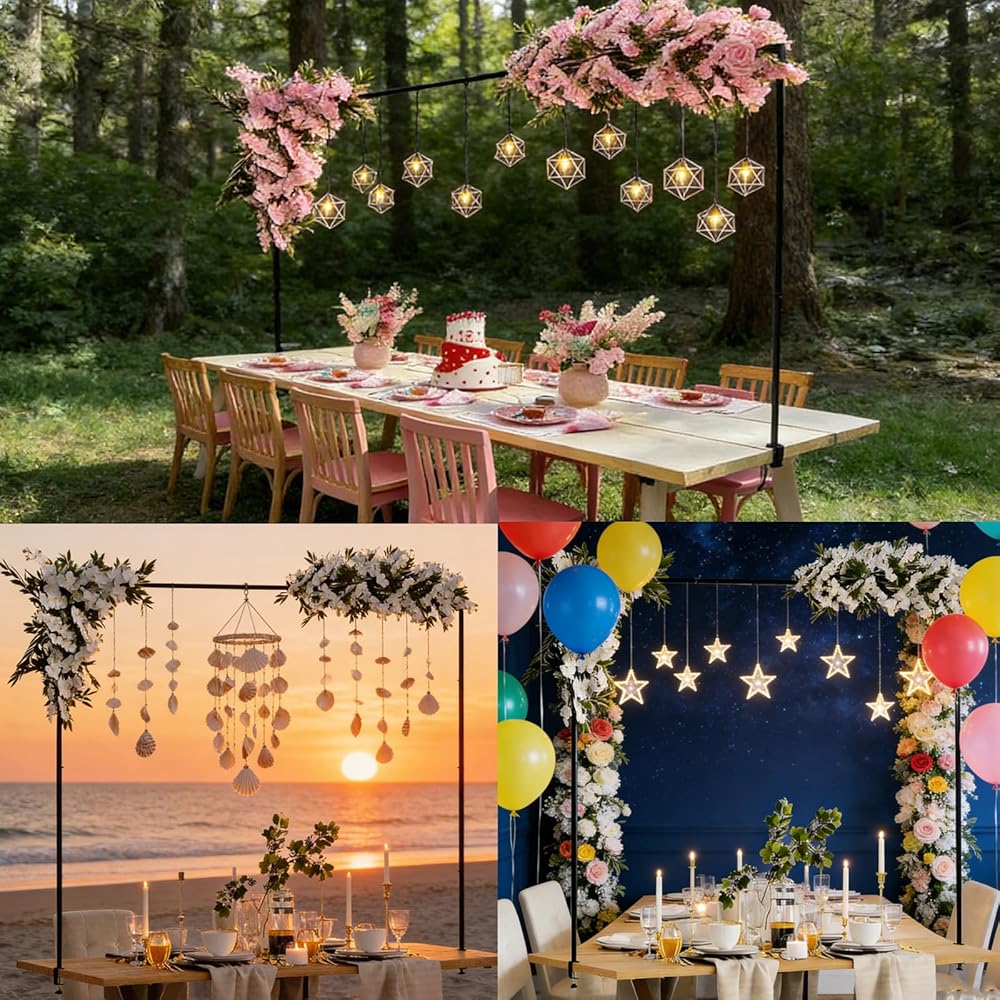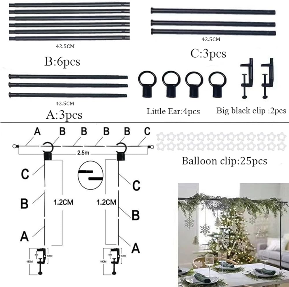 تصميم متعدد الاستخدامات قابل للتعديل: يمكنك بسهولة تخصيص الطول من 16 بوصة إلى 98 بوصة والارتفاع من 16 بوصة إلى 47 بوصة ليناسب حجم طاولتك واحتياجات الديكور بشكل مثالي. سواء كانت طاولة حلوى صغيرة أو إعداد مأدبة طويلة، فإن حامل قضيب الطاولة هذا المزود بمشابك يتكيف بسلاسة مع حفلات الزفاف أو أعياد الميلاد أو الحفلات ذات الطابع الخاص.