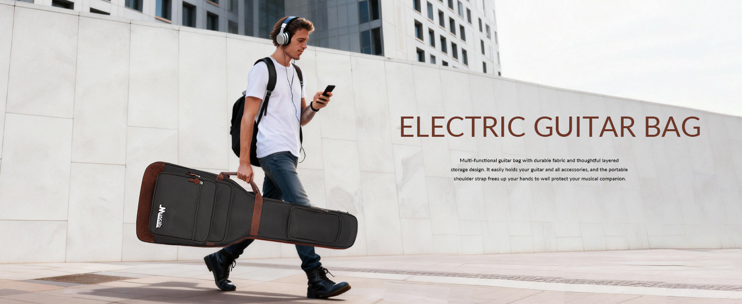 يوفر المقبض الجانبي وأحزمة الكتف المبطنة المزدوجة القابلة للتعديل مع حلقة تعليق خلفية طرقًا متعددة مريحة لنقل الجيتار من مكان إلى آخر. كحقيبة حمل للجيتار الكهربائي أو حقيبة ظهر للجيتار لنقل الجيتار الخاص بك ذهابًا وإيابًا إلى العربات، والسفر، والمنزل، والكنيسة، والدروس، والحفلات الموسيقية، ومدرسة الموسيقى، والبروفات.