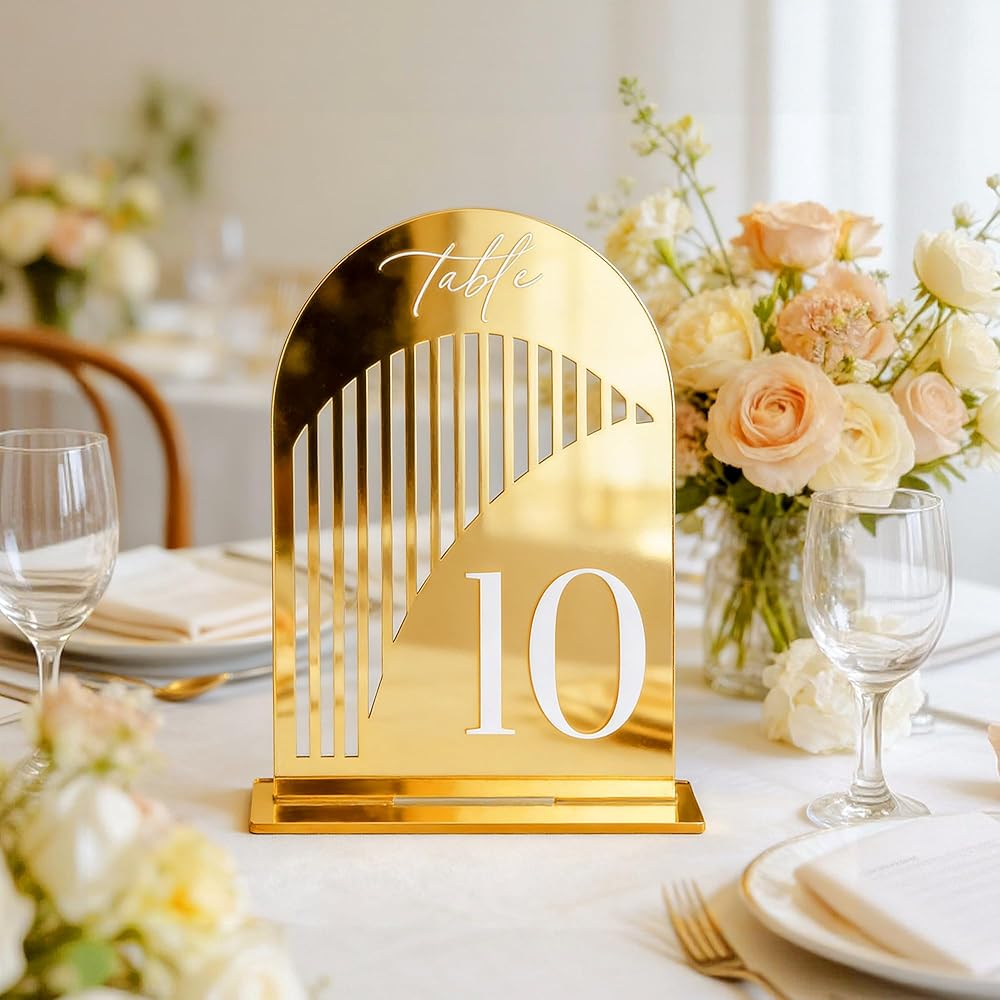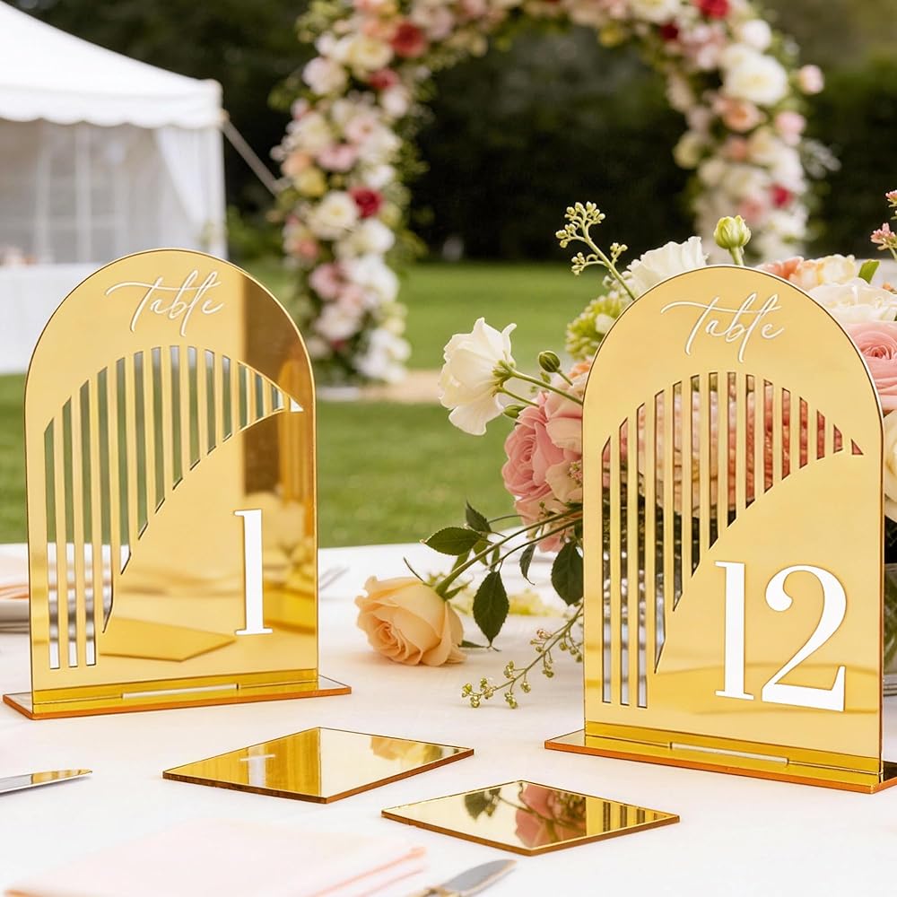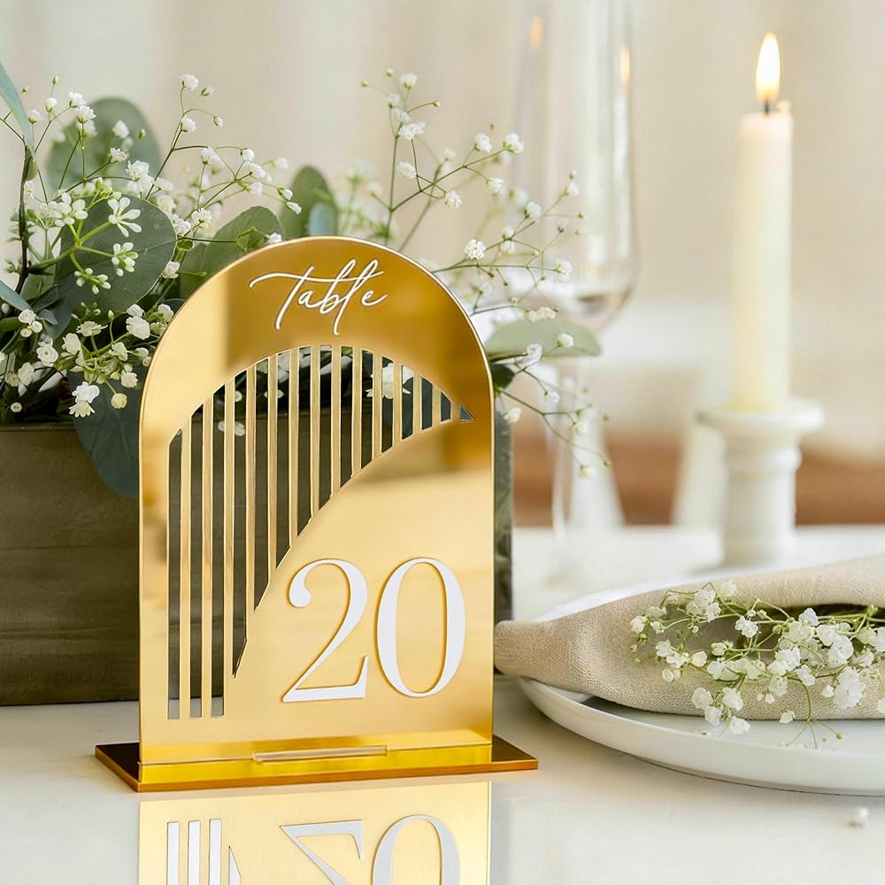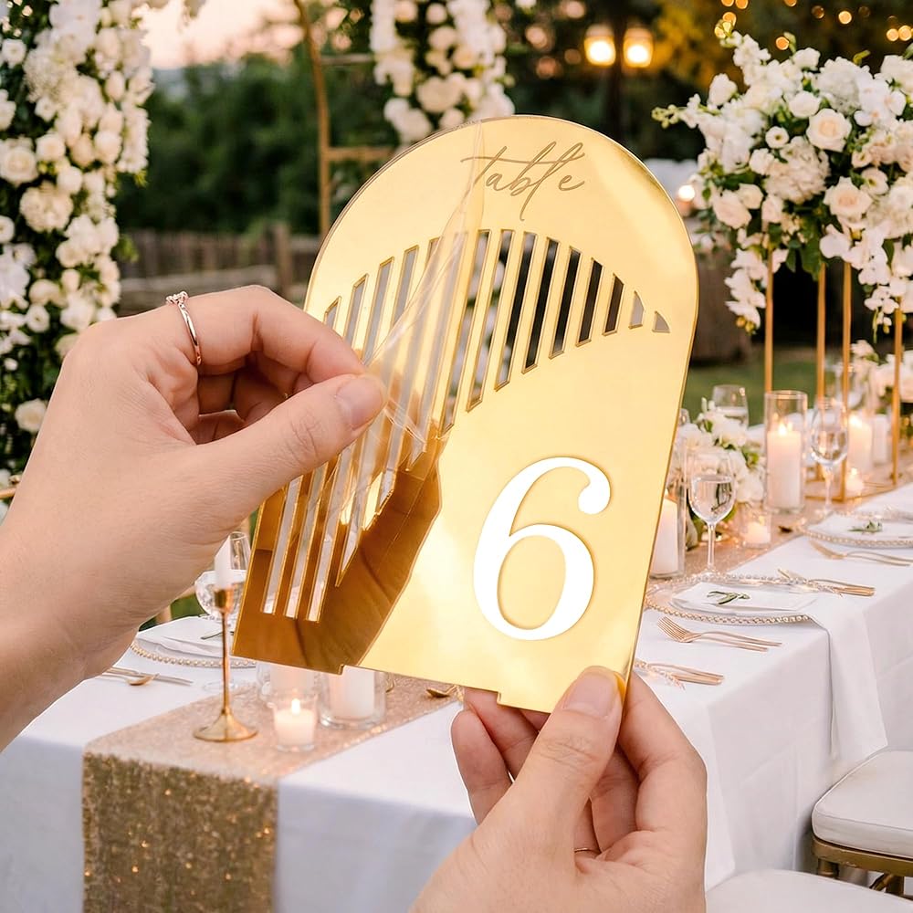 【أرقام طاولات أكريليك ذهبية - ارفع أناقة حفل الزفاف】قم بتوجيه الضيوف بسلاسة مع أرقام طاولات الأكريليك مقاس 5.5×7، المصممة لتعزيز رقي حدثك. يعمل التصميم البسيط والملفت للنظر على تحسين الديكور أثناء رسم الإطراء، مما يخلق جوًا متماسكًا لا يُنسى ليومك الخاص