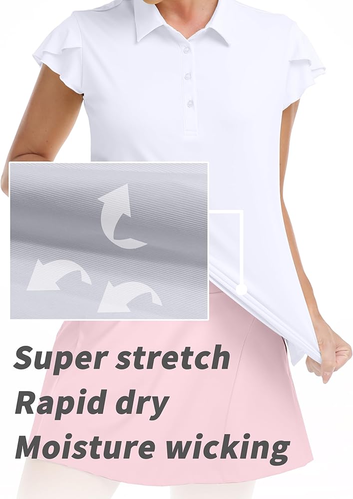 【مناسب لجميع المناسبات】قميص بولو التنس النسائي ذو الأكمام القصيرة المكشكشة ليس مثاليًا لملعب التنس فحسب، بل أيضًا متعدد الاستخدامات بما يكفي لارتدائه في مناسبات مختلفة. سواء كانت نزهة غير رسمية أو مناسبة اجتماعية، فإن قميص البولو الخاص بنا سيبقيك بمظهر أنيق ورياضي أينما ذهبت.