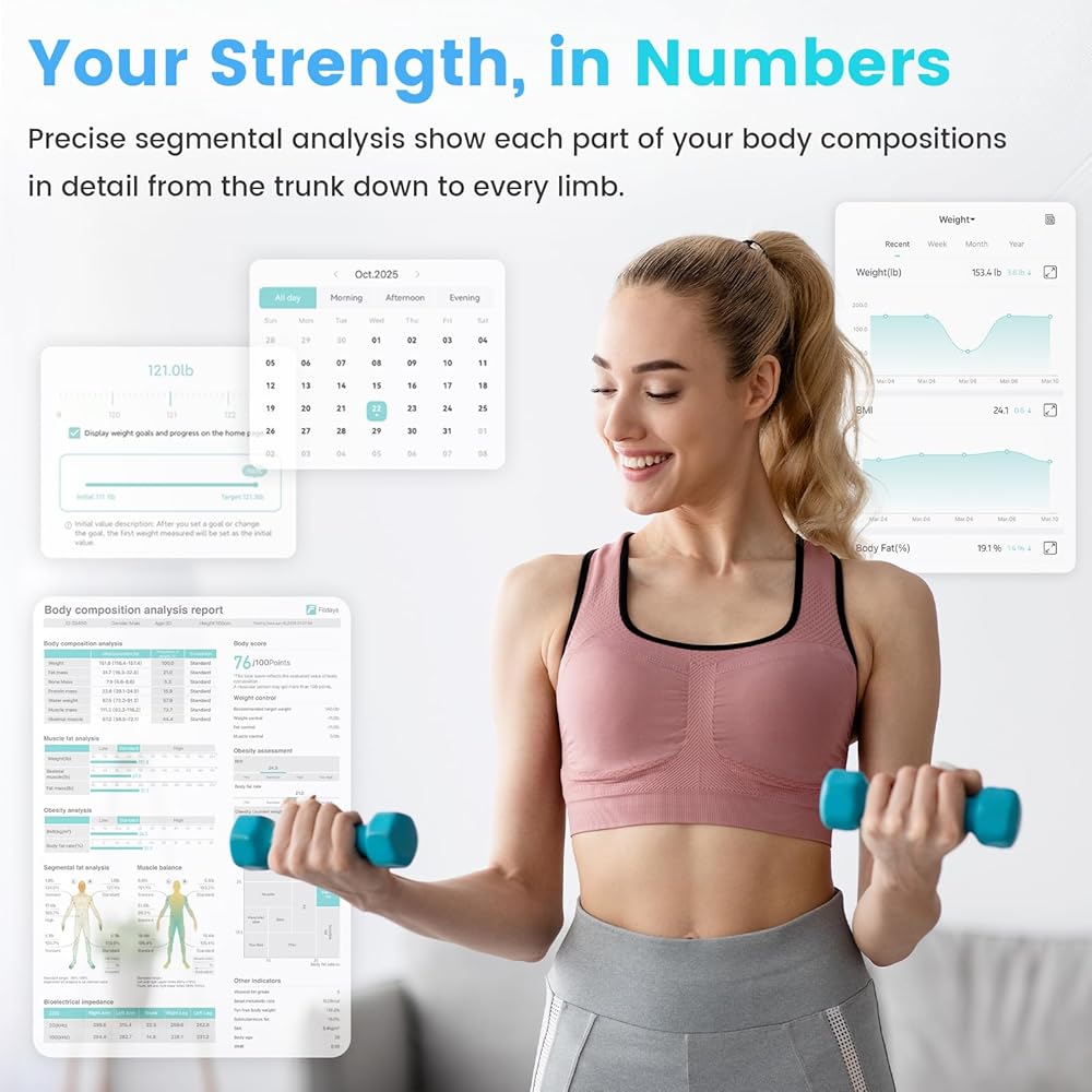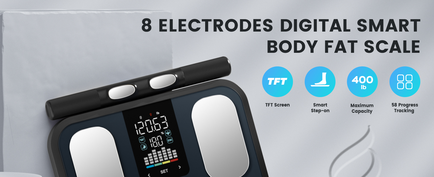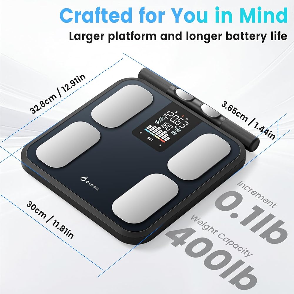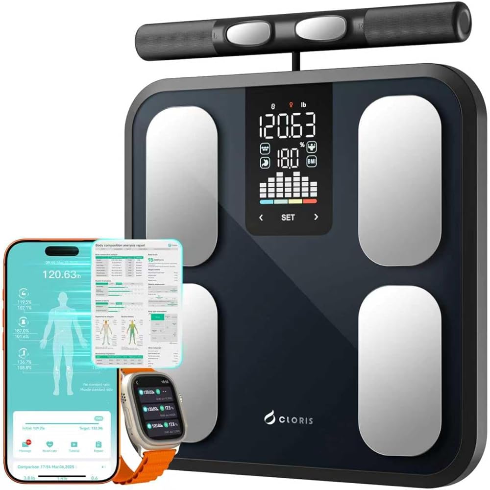 CLORIS 8 أقطاب كهربائية مقياس رقمي ذكي FSA&HSA مؤهل لوزن الجسم والدهون الدقيقة مؤشر كتلة الجسم كتلة العضلات قياس تكوين الجسم محلل الصحة مع تطبيق بلوتوث