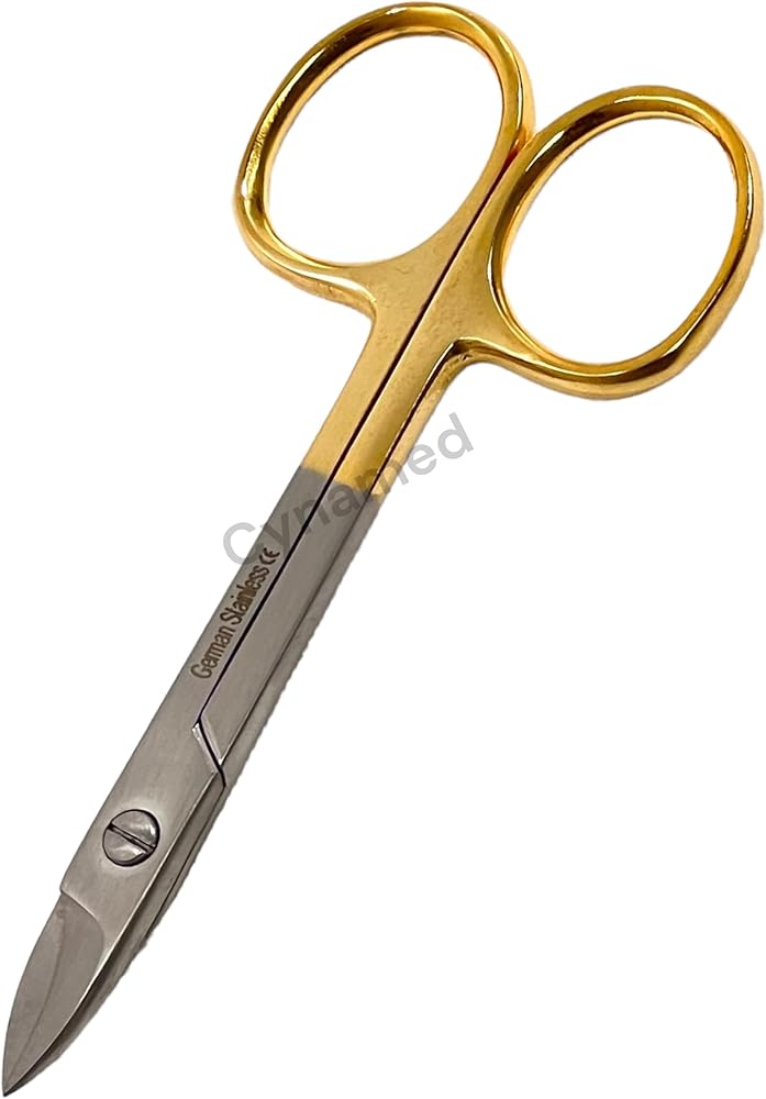 Includes: 1 Piece - Dental Collar and Crown Cutting Scissors 4.25" Straight, with Gold Handle. Material: High-quality German stainless steel for durability, rust resistance, and ease of cleaning. Length: 4.25 inches - ideal size for maneuvering in the oral cavity with a straight blade offers better control and visibility for intricate cuts. Gold Rings: Ergonomic handle design with gold-colored rings for a comfortable grip and secure handling. Cutting Performance: Sharp blades for clean and precise cuts of various dental materials, including: crown materials and wires.