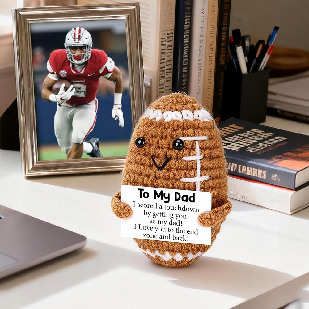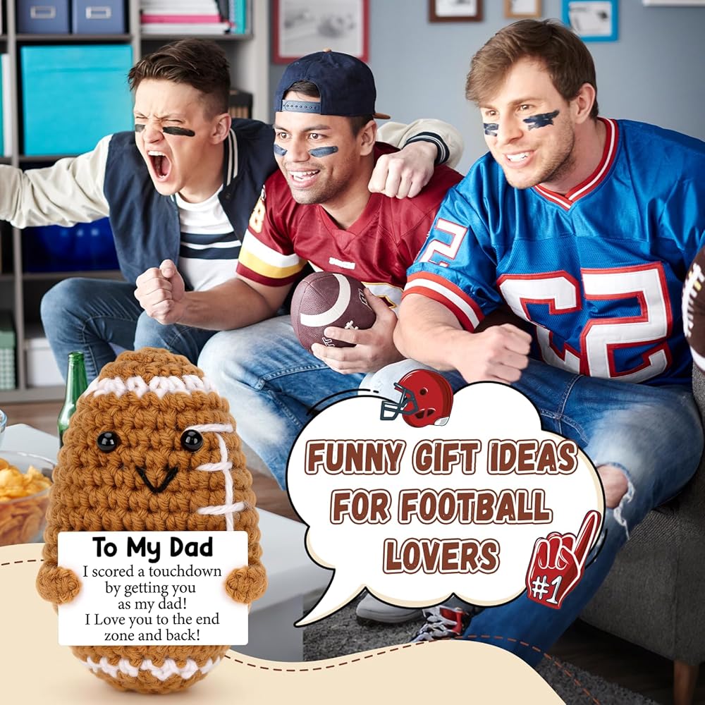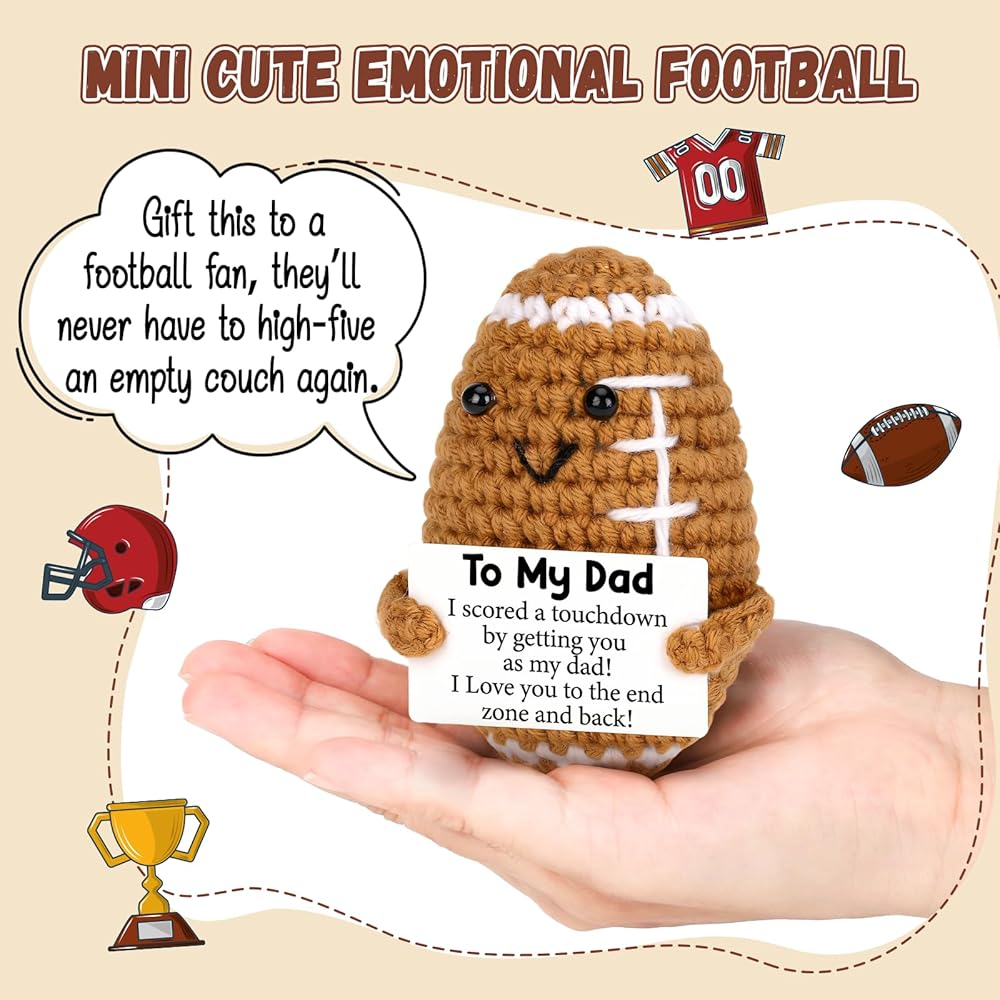 CryCarrot Mini Funny Crochet Football Gifts for Dad from Son Daughter, Handmade Crochet Birthday Valentine Gifts for Dad Step Father