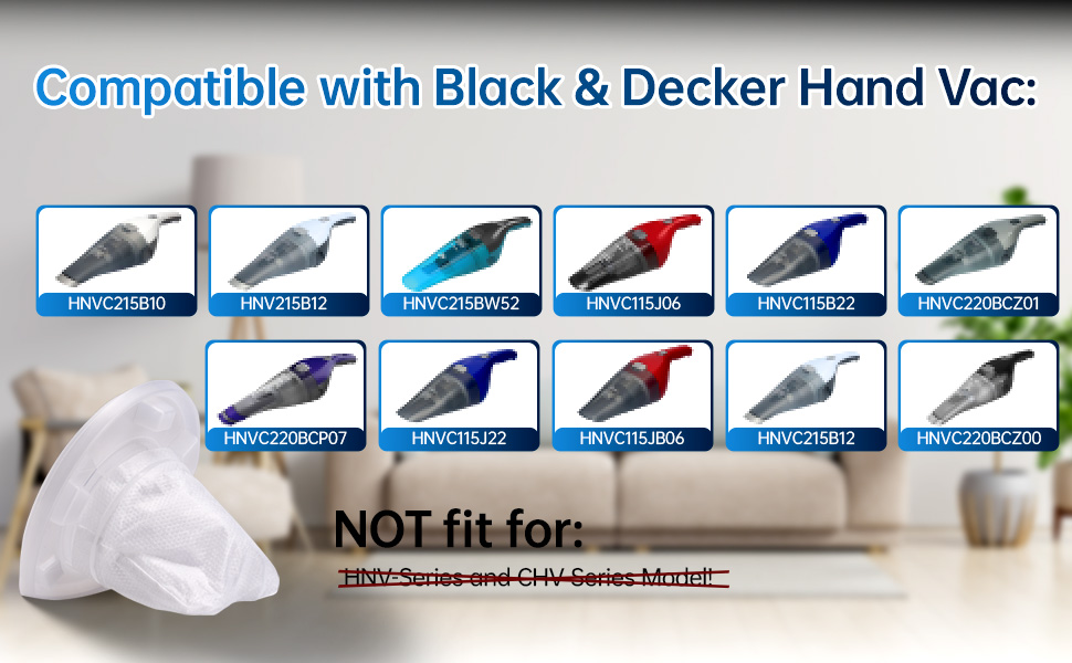 التوافق: يتوافق فلتر HNVCF10 الخاص بنا مع المكانس الكهربائية المحمولة من بلاك + ديكر، بما في ذلك الموديلات: HNVC215B10، HNV215B12، HNVC215BW52، HNVC115J06، HNVC115B22، HNVC220BCZ01، HNVC220BCP07، HNVC115J22، HNVC115JB06، HNVC215B12 وHNVC220BCZ00 (يناسب فقط طراز سلسلة HNVC، ولا يناسب طراز سلسلة HNV)