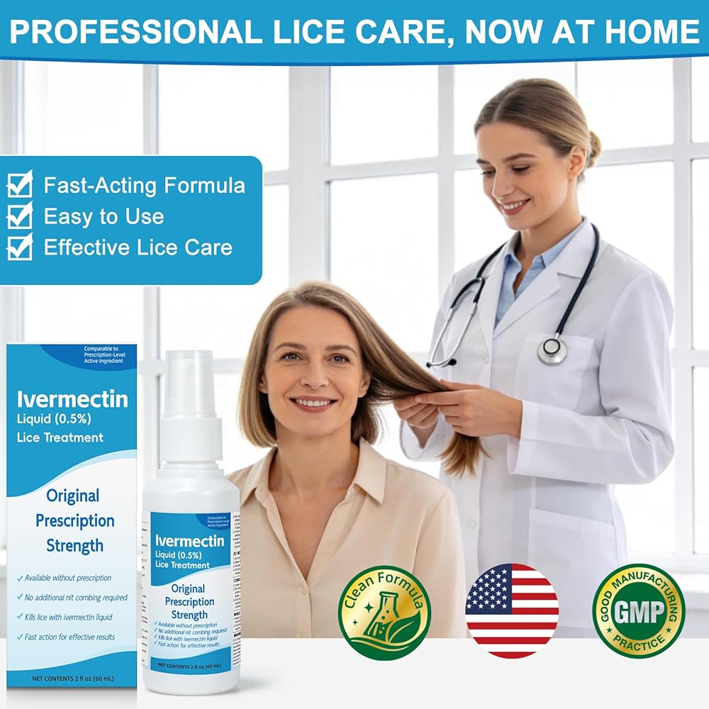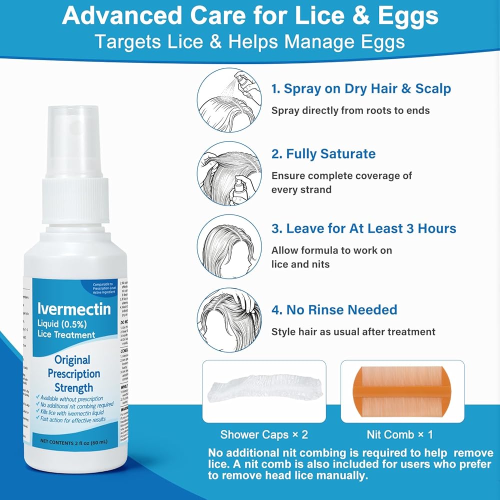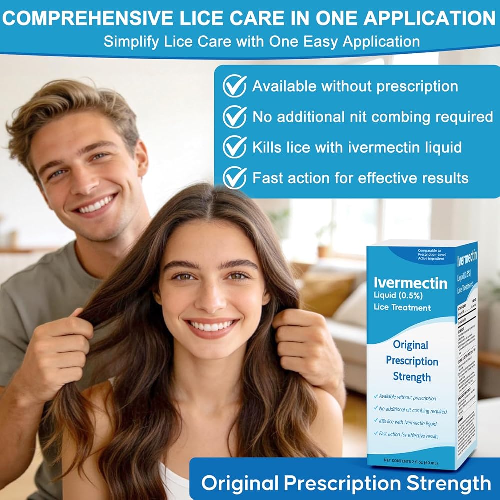 • Ivermectin Liquid 0.5% Lice Treatment: This lice treatment liquid is formulated with prescription-strength ivermectin. Designed for topical application to hair and scalp to help treat head lice and eggs effectively.