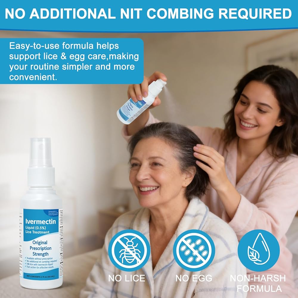 • Ivermectin Liquid 0.5%: A potent topical liquid lice treatment applied directly to hair and scalp for efficient lice treatment.