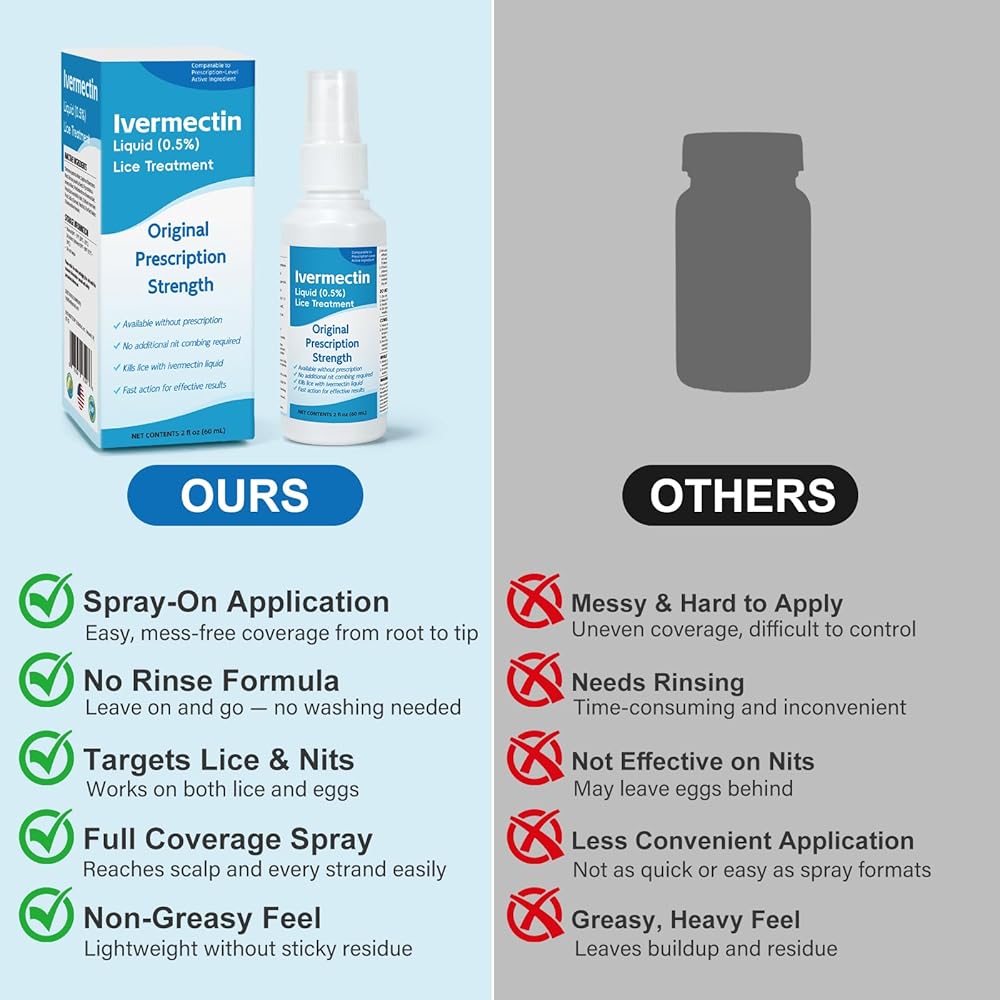 • Prescription-Strength Ivermectin Formula: Powered by ivermectin 0.5%, this prescription-strength lice treatment liquid delivers medical-grade performance. A reliable solution for adult head lice and egg treatment.