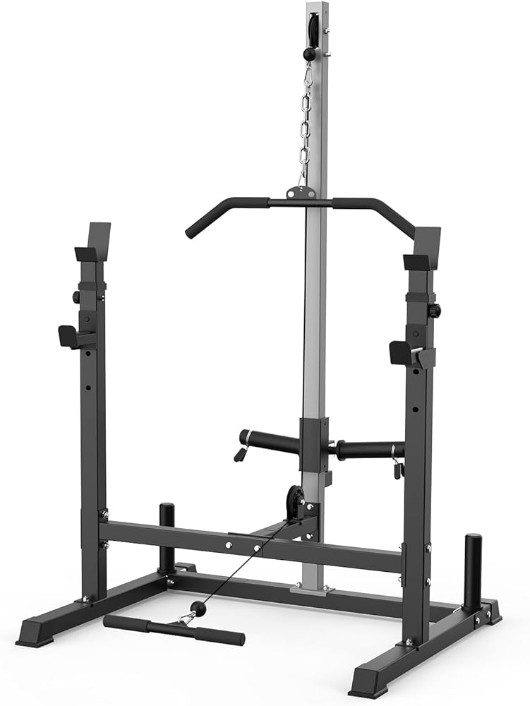 【تمرين الجسم بالكامل مع جهاز واحد】 يجمع قفص الطاقة هذا بين رف القرفصاء وآلة السحب للأسفل وغيرها من الملحقات، ويوفر مجموعة متنوعة من التمارين مثل الضغط على المقعد والقرفصاء وسحب الحبل للأسفل والتجديف بالجلوس والمزيد. خيار رائع لصالة الألعاب الرياضية المنزلية.