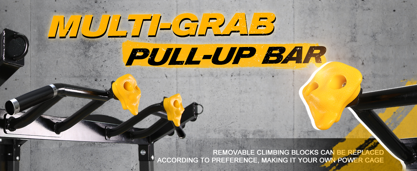 2024 UPDATED DESIGN: The power cage now comes with removable DIY climbing blocks, allowing you to customize your home gym and give it a personal touch. The V-shaped handle has been replaced with a T bar, giving you more choices for different grip widths. This makes it more user-friendly. Additionally, the quick-install barbell plate storage tubes and foot pedals make the installation process more convenient and efficient.