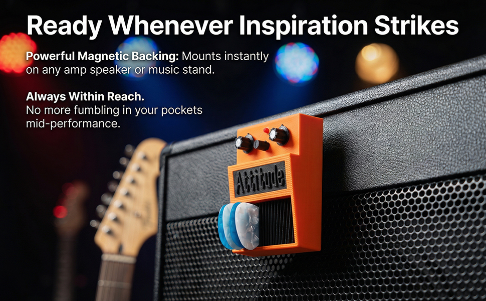 [Pro Studio & Gothic Decor] استمتع بأجواء موسيقى الروك والميتال مع عرض اختيار الجيتار "Attitude". مستوحى من مقابض أمبير عتيقة، يمكن استخدام حامل الالتقاط الرائع هذا كديكور موسيقي احترافي. إنه لطيف وبسيط ومفيد للحفاظ على الاستوديو أو غرفة التدريب الخاصة بك نظيفة وخالية من الفوضى.