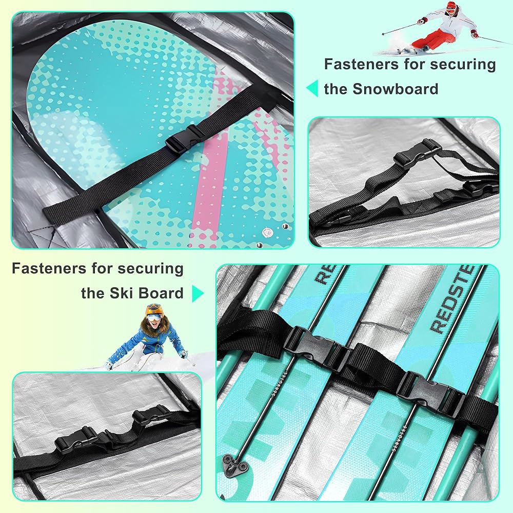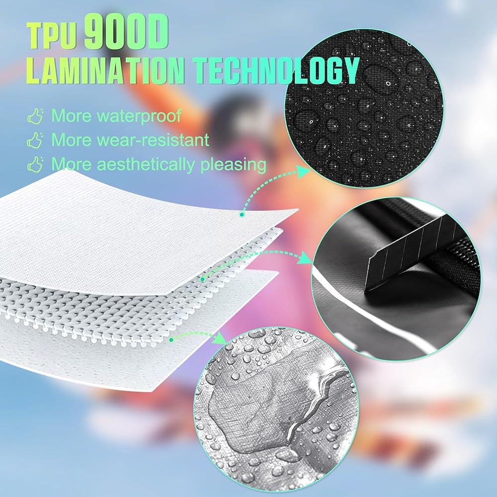 حماية شديدة التحمل ومقاومة للماء، مصنوعة من نسيج متين مقاوم للتمزق 900D وبطانة مقاومة للماء من الداخل والخارج، حقيبة التزلج المقاومة للماء شديدة التحمل هذه تتحمل الثلج والطين والمطر والتعامل مع الأمتعة القاسية - مصممة لمغامرات الطيران وإساءة استخدام الجبال.