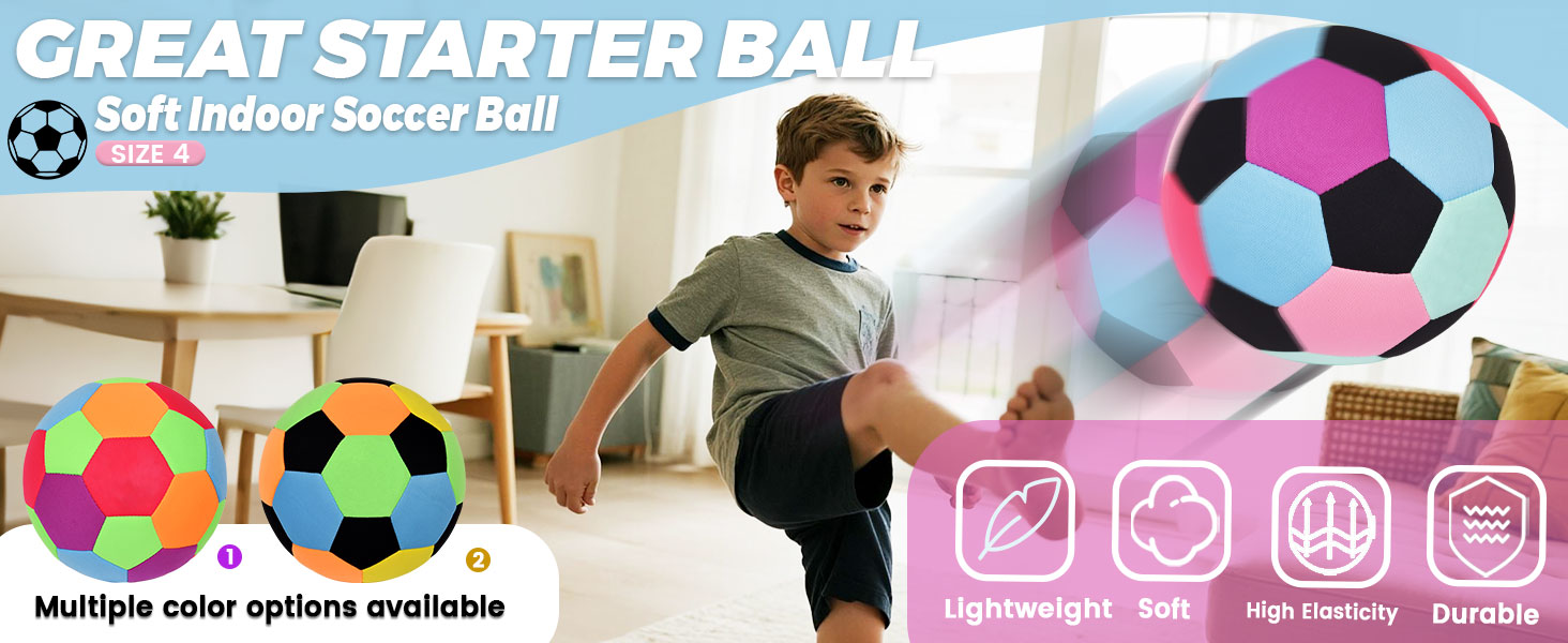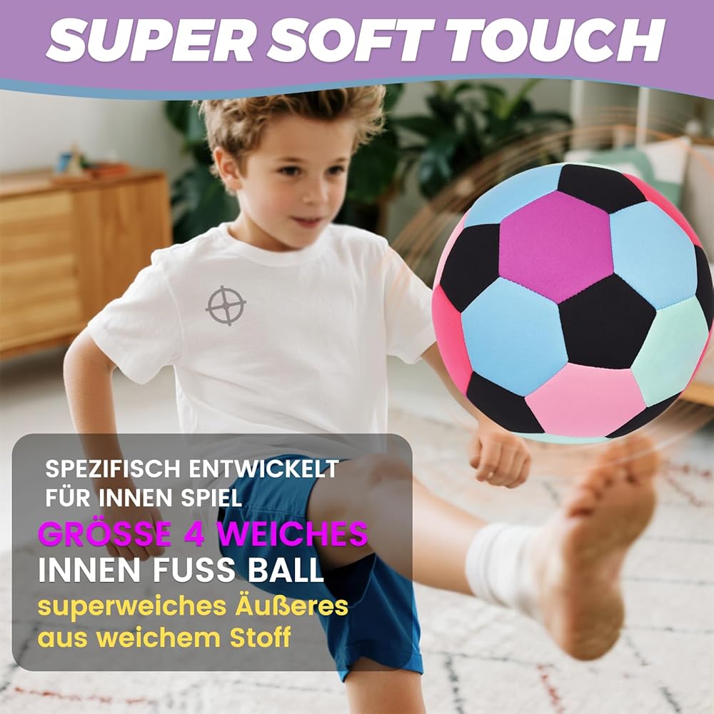 كرة قدم من القماش الناعم مقاس 4 من KUYOTQ، كرة قدم آمنة وناعمة للأطفال في الأماكن المغلقة لممارسة كرة القدم للشباب، كرة تدريب منزلية خفيفة الوزن للمراوغة والشعوذة في المنزل