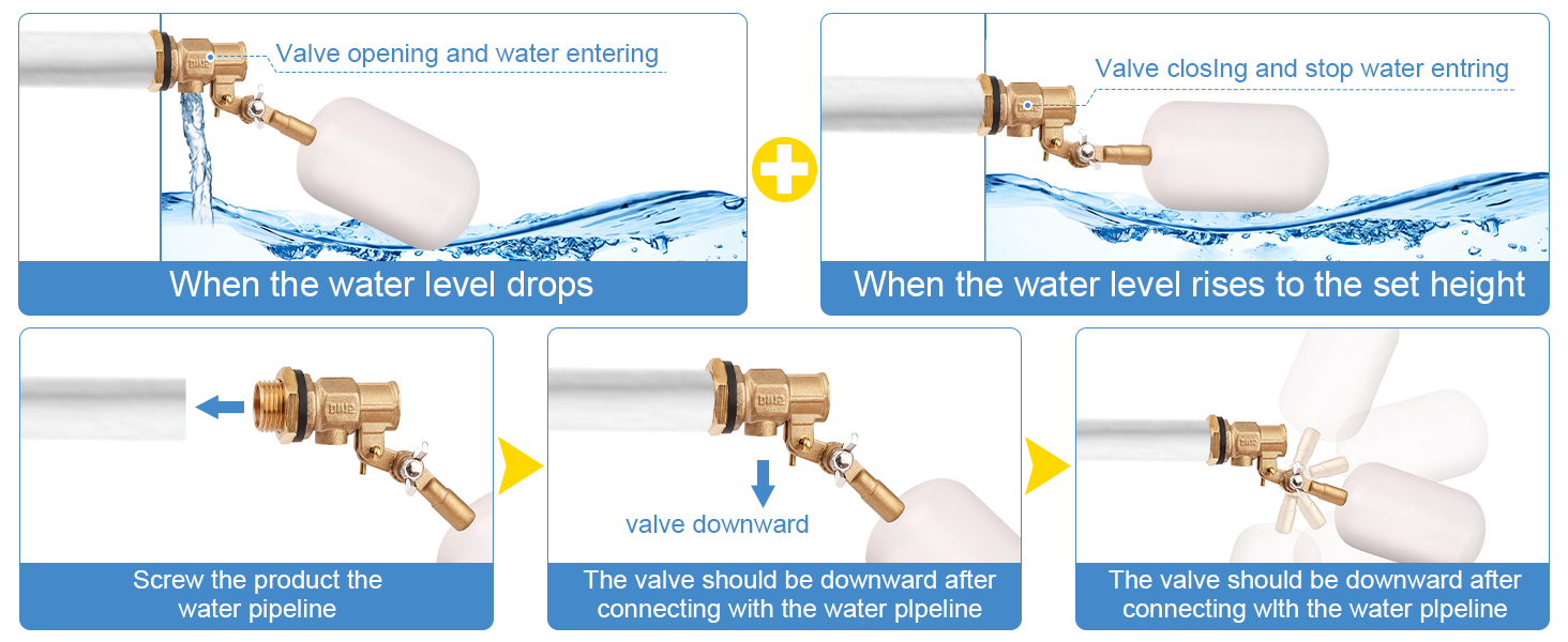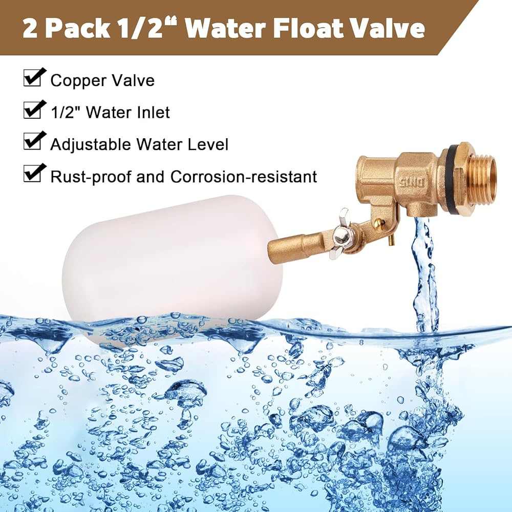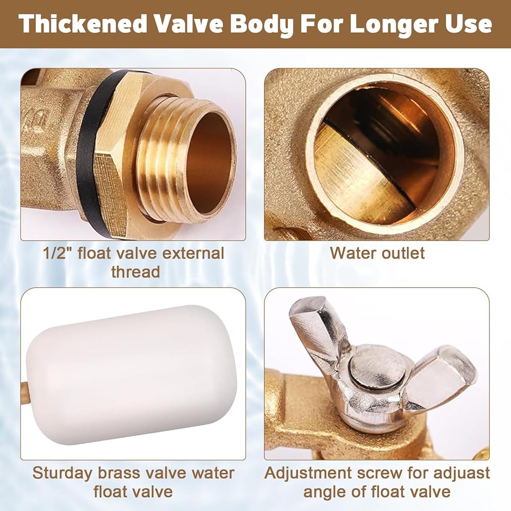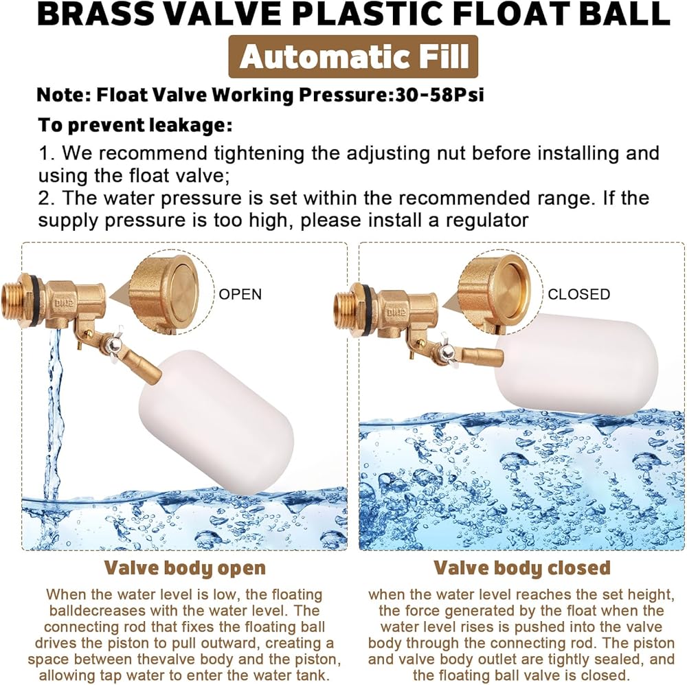 • صمام تعويم للتحكم في مستوى المياه: هذا الصمام العائم للمياه مصنوع من البلاستيك والنحاس عالي الجودة، وأكثر استقرارًا ولن يصدأ، ومستقر ولن يصدأ. قلب الصمام مصنوع من مادة السيليكون غير السامة وعديمة الرائحة، وآمنة للاستخدام. وظيفة التحكم في مدخل المياه الجيدة، ستمنحك تجربة جيدة