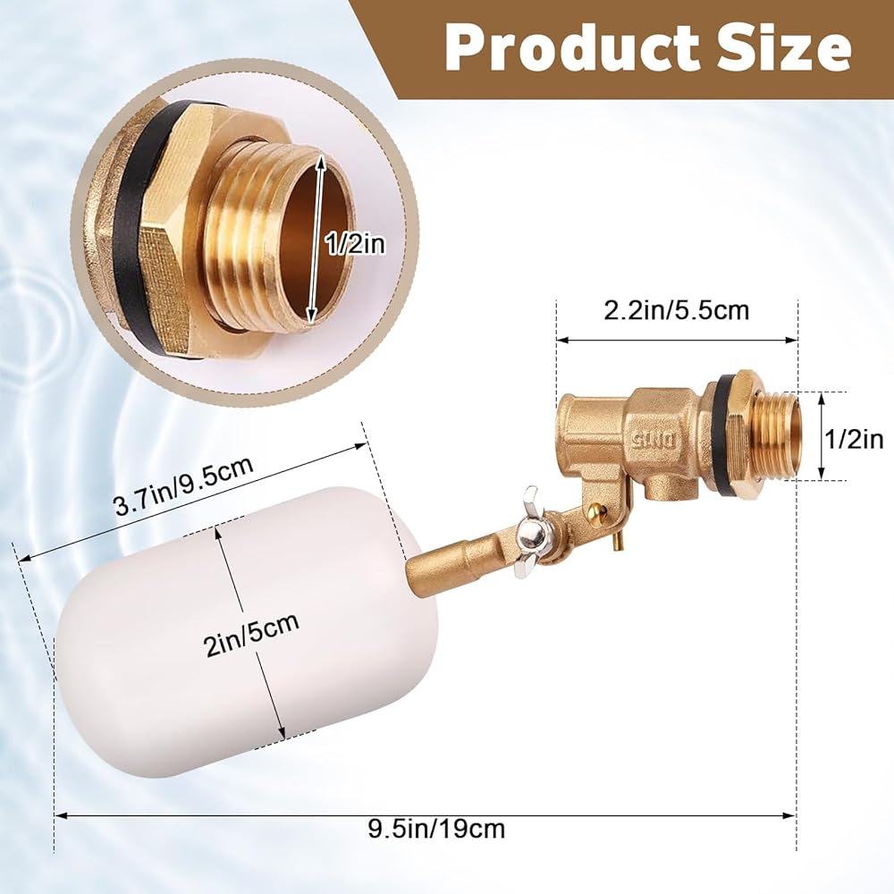 صمام تعويم المياه 1/2 بوصة، صمام كروي نحاسي عائم مع ذراع قابل للتعديل، تعبئة تلقائية وصمام التحكم في مستوى المياه لحوض المياه والنوافير وخزان المياه والبرك وحمام السباحة وأحواض السمك