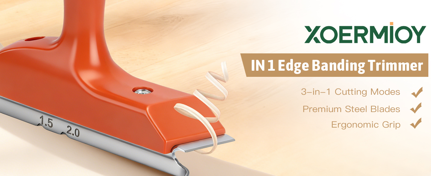 【تشذيب دقيق 3 في 1 متعدد الاستخدامات】 تمت معايرته خصيصًا لسمك نطاقات الحواف من 0.3 مم إلى 2 مم. تدمج هذه الأداة ثلاث وظائف في وظيفة واحدة: تشذيب الحواف المستقيمة النظيفة، وتشكيل المنحنى الخارجي السلس، وشطب R1.5/R2 الاحترافي. احصل على حافة الأمان المستديرة والخالية من الاختباء على كل باب خزانة - وهي مثالية لمشاريع الخزائن والأرفف التي تصنعها بنفسك.