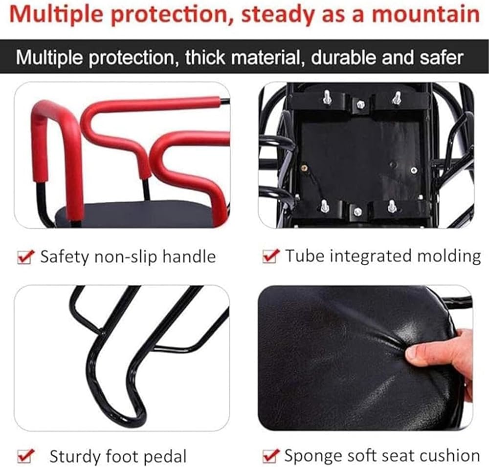 High-quality:The child bicycle safety seat is made of safe synthetic leather. The seat frame is made of steel, and the child bike seat is wear-resistant, ensuring safety