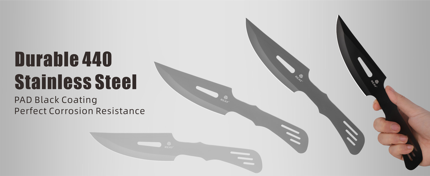 - فولاذ 440 ممتاز: مصنوعة من فولاذ 440، توفر سكاكين الرمي هذه صلابة ممتازة ومقاومة للتآكل، وتحافظ على حدتها من خلال الاستخدام المكثف.