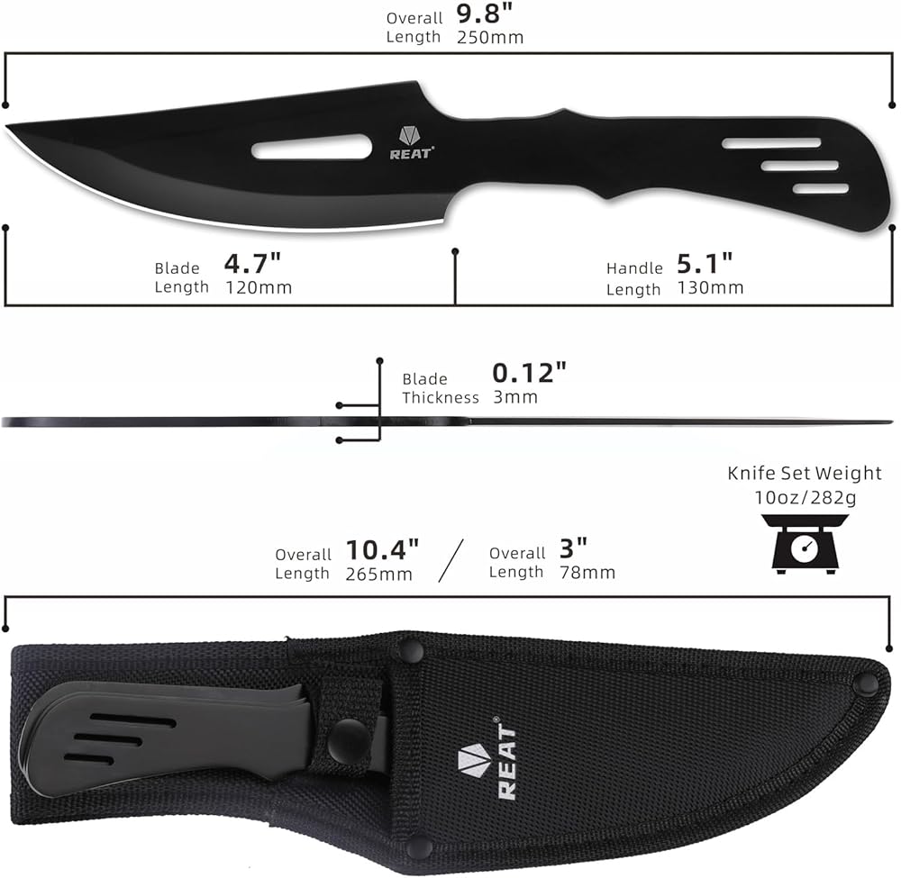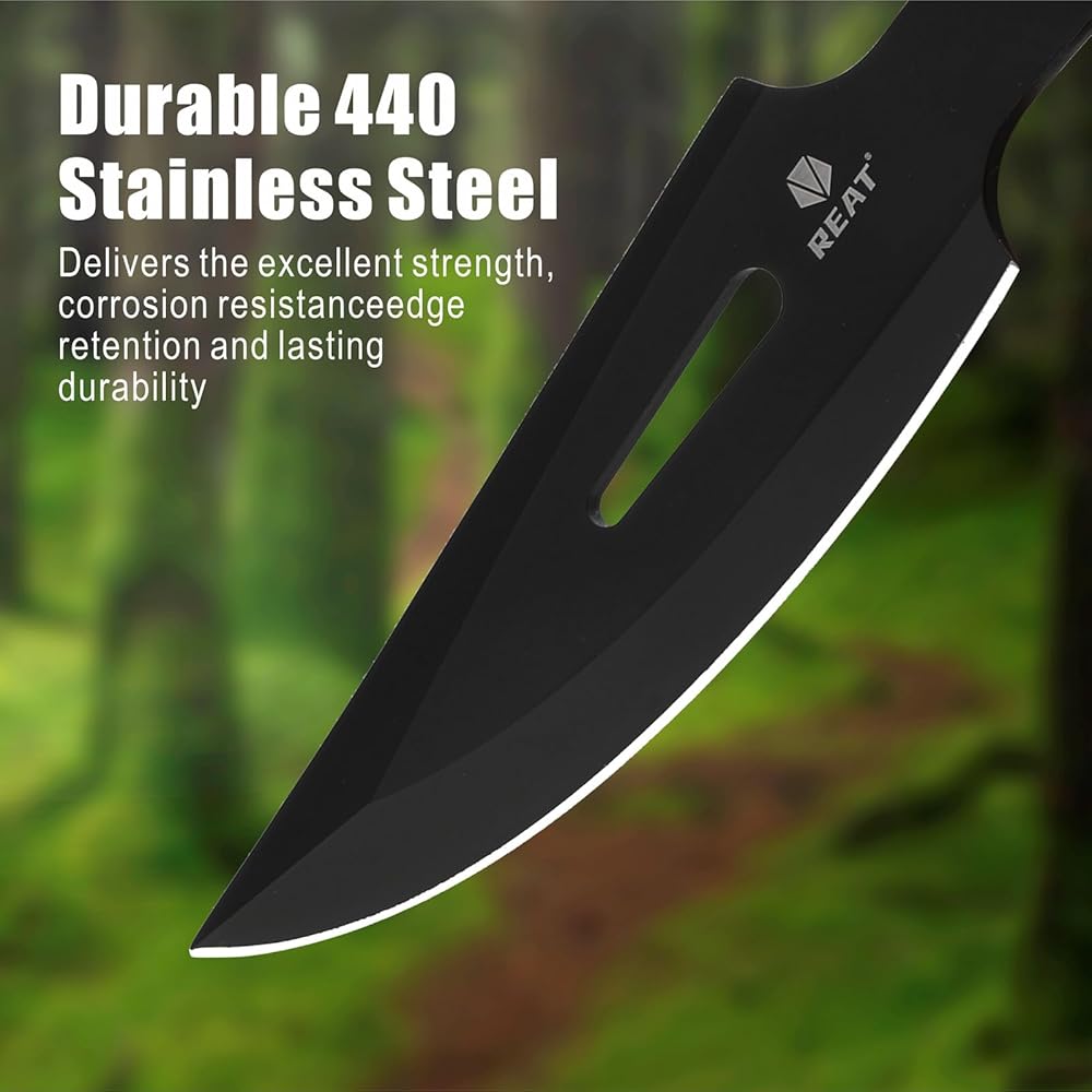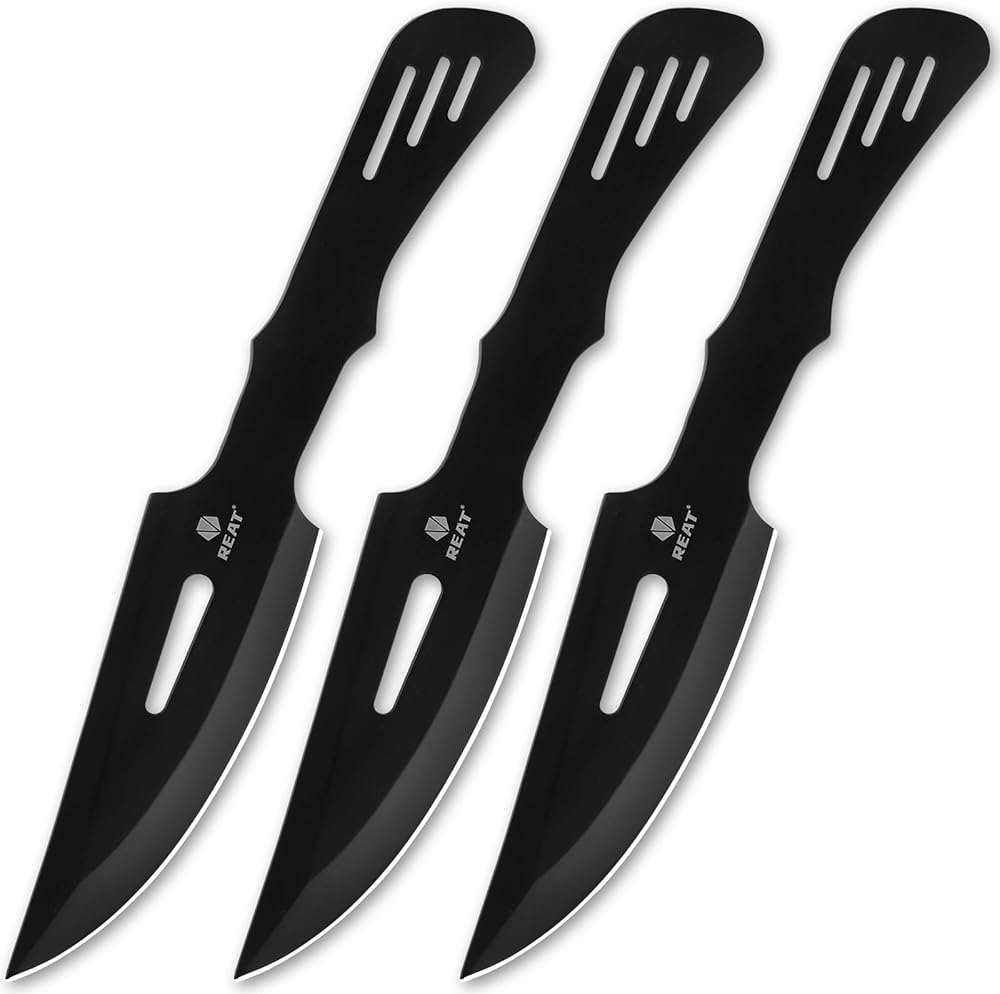 مجموعة سكاكين الرمي من REAT - 3 قطع، سكين رمي شديد التحمل مقاس 10 بوصات مع 440 من الفولاذ المقاوم للصدأ، تتضمن غمدًا للتخزين الآمن، وسكين نينجا كوناي للمنافسة والتدريب والترفيه والهدايا للرجال والنساء