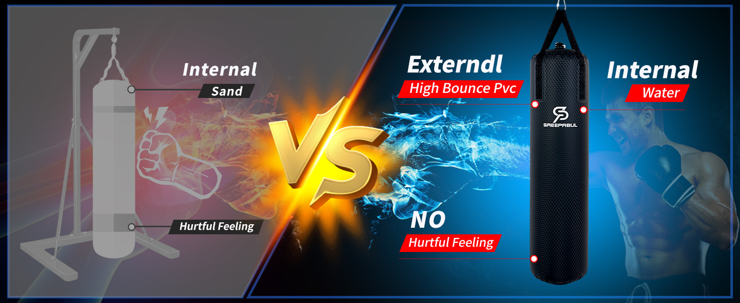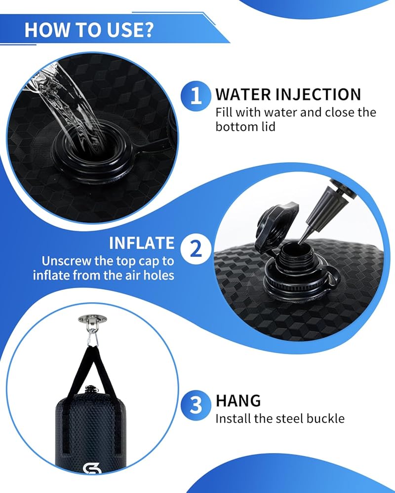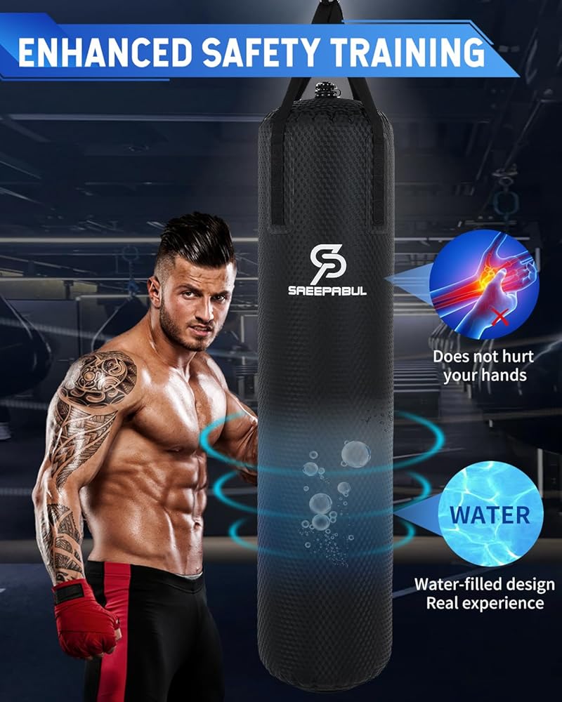 تصميم مريح وآمن: كيس اللكم الثقيل للبالغين مملوء بالماء، مما يوفر تجربة ملاكمة أصلية دون الضغط الزائد على مفاصلك. تضمن ميزة النفخ استجابة ارتدادية فائقة، مما يقلل من ألم ما بعد التدريب ويحمي معصمك، مما يجعلها وسيلة ممتعة لتخفيف التوتر وحرق السعرات الحرارية