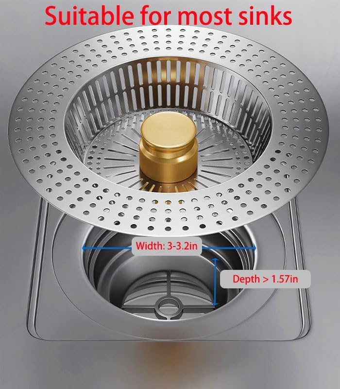 - ملاءمة مثالية: مصممة خصيصًا لأحواض المطبخ مع فتحات تصريف يبلغ عرضها من 3 إلى 3.2 بوصة وعمق أكبر من 1.58 بوصة للتركيب الآمن