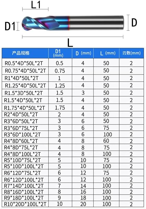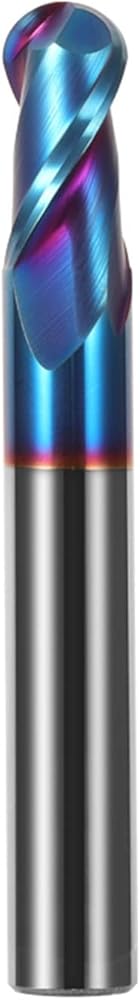 • Ball end cut 2-flute design spiral chip space design for fast and clean chip removal. Sharp cutting edge provides smooth cutting.