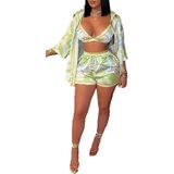 Hotheart إمرأة مثير الصيف 3 قطع الأزهار طباعة قميص + المحاصيل أعلى + شورت مجموعة الشاطئ ملابس السباحة مجموعة