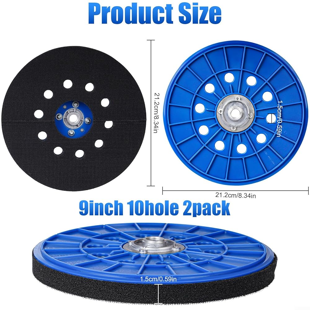 【Sturdy and Versatile】This set includes 2pcs drywall sander hook and 10hole 9in 210mm backup pads with 14mm thread. Made of PP material, these backup pads are built to last and suitable for various sanding applications.