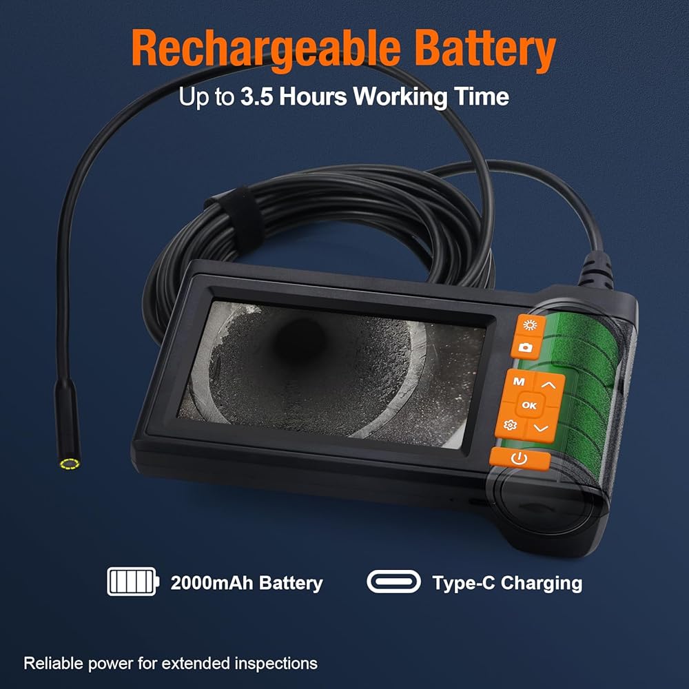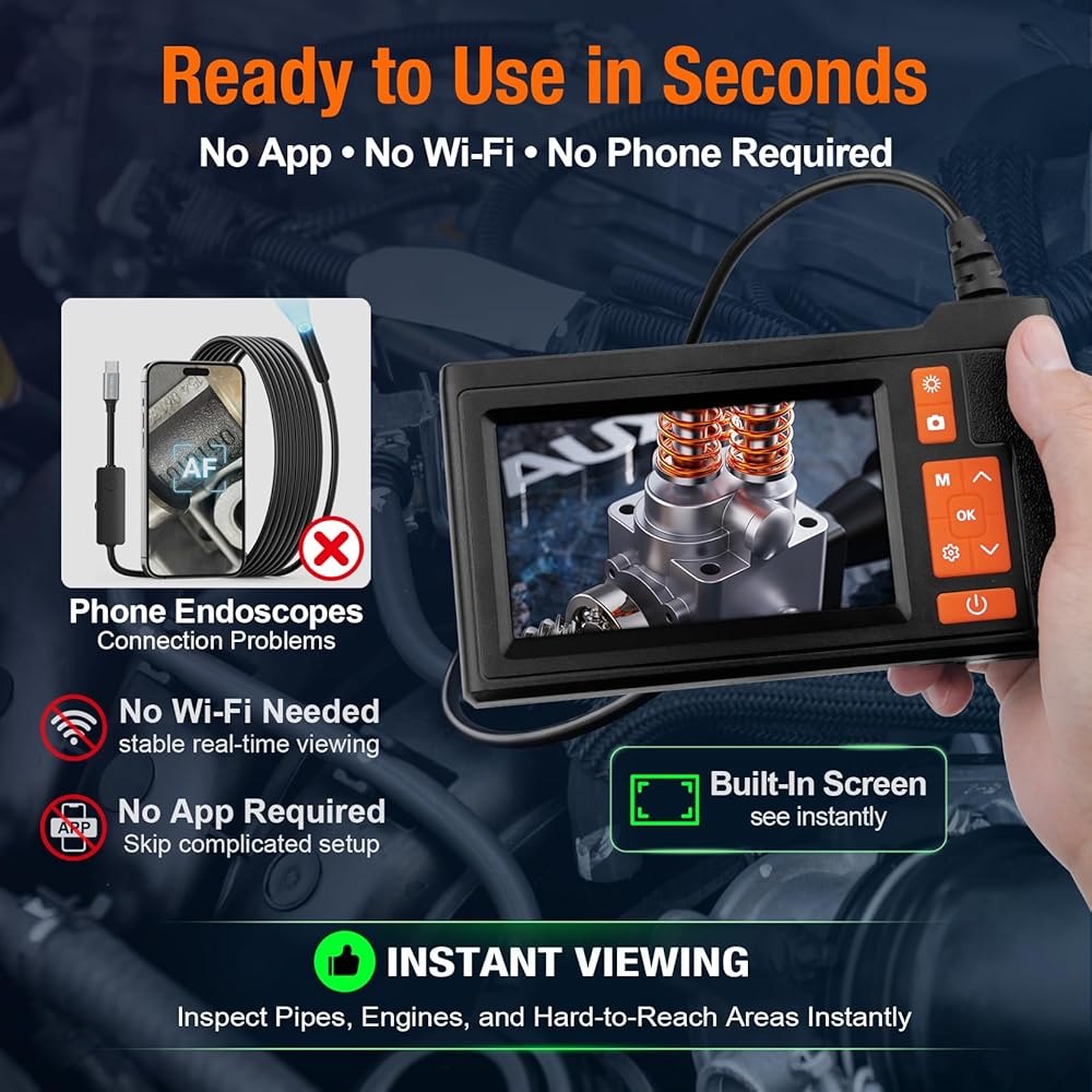 لا يوجد هاتف، لا يوجد تطبيق - فحص فوري: تتميز كاميرا المنظار هذه ذات الضوء بشاشة ملونة IPS مدمجة مقاس 4.3 بوصة، مما يسمح لك بالفحص الفوري بدون شبكة Wi-Fi أو تطبيقات أو الاقتران؛ أكثر موثوقية من حلول نطاق الكاميرا القائمة على الهاتف - فقط قم بتشغيلها وابدأ العمل