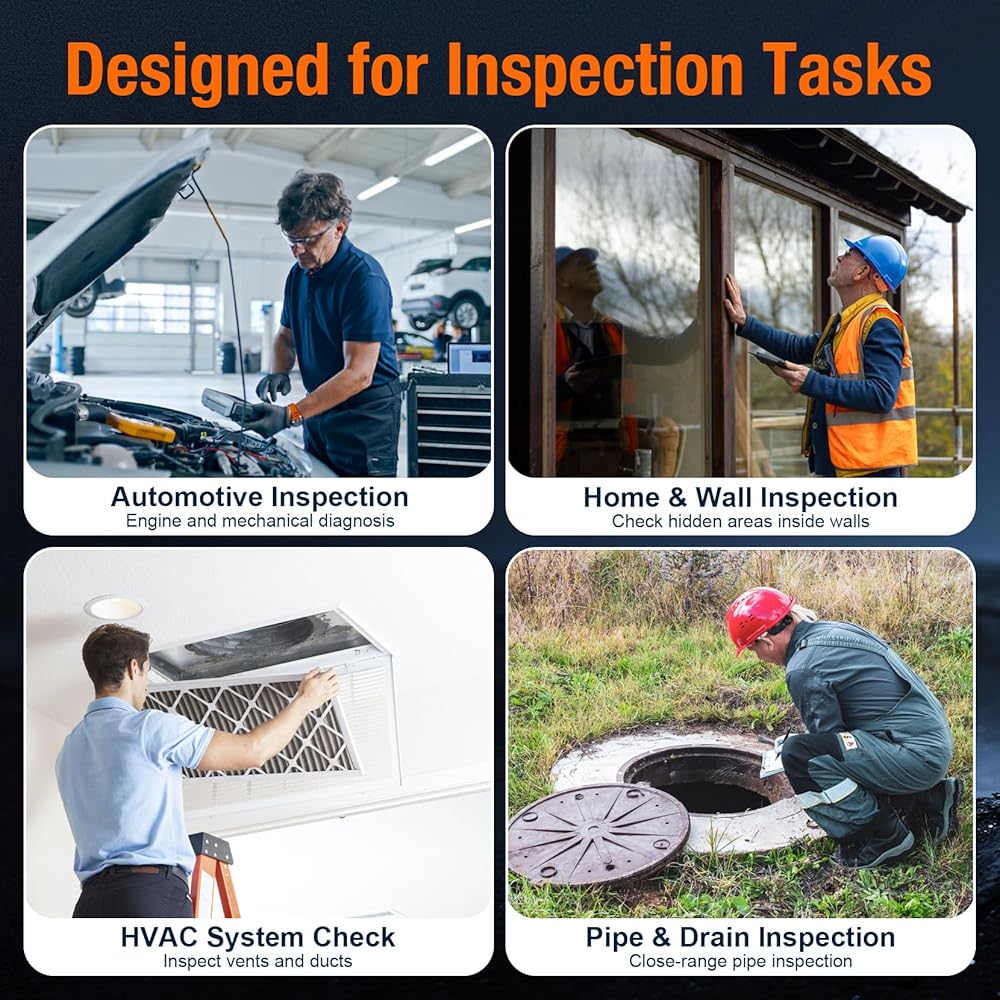 صورة واضحة بدقة 1080 بكسل للعرض من مسافة قريبة: توفر كاميرا borescope عالية الدقة المحسنة صورًا حادة ومفصلة للفحص من مسافة قريبة (التركيز الأمثل 0.8-4 بوصة)؛ مثالي كنطاق كاميرا ميكانيكي مع ضوء للمحركات والأسطوانات والأنابيب وتجويف الجدران والمساحات الضيقة