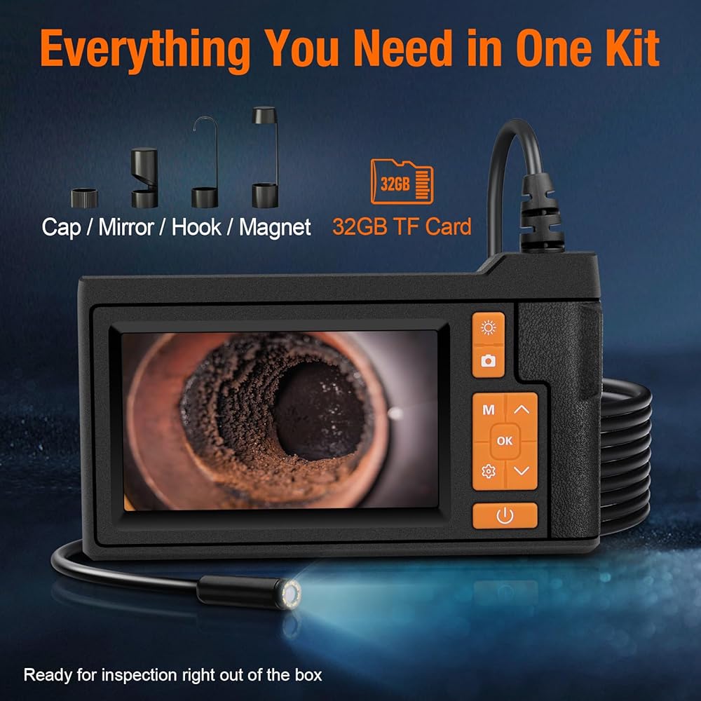مجموعة فحص كاملة وعمر بطارية طويل: تتضمن بطاقة TF سعة 32 جيجابايت وخطافًا ومغناطيسًا ومرآة جانبية وغطاء واقي؛ بطارية مدمجة قابلة لإعادة الشحن بسعة 2000 مللي أمبير توفر ما يصل إلى 3.5 ساعة من الاستخدام؛ كاميرا ذات نطاق تجويف متعدد الاستخدامات مزودة بإضاءة للمحترفين ومحترفي الأعمال اليدوية ومفتشي المنازل