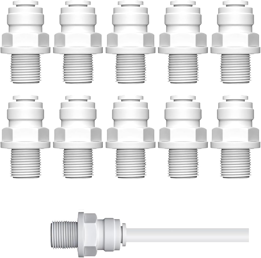 Maintain your reverse osmosis or deionization system with this 10-pack of 1/4 push to connect fittings. Designed specifically for RO/DI water purifiers, each male push-to-connect tube fitting ensures a quick, secure link between filter stages, storage tanks, and faucets. These fittings eliminate the need for threaded adapters and plumber's tape, streamlining your installation