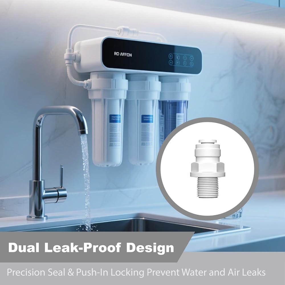 1/4″ NPT Quick Connect Compatibility: Each fitting features a 1/4″ male NPT thread, making them ideal 1/4 NPT quick connect adapters for integrating with filter housings, shut-off valves, and other threaded components in your water filtration setup.